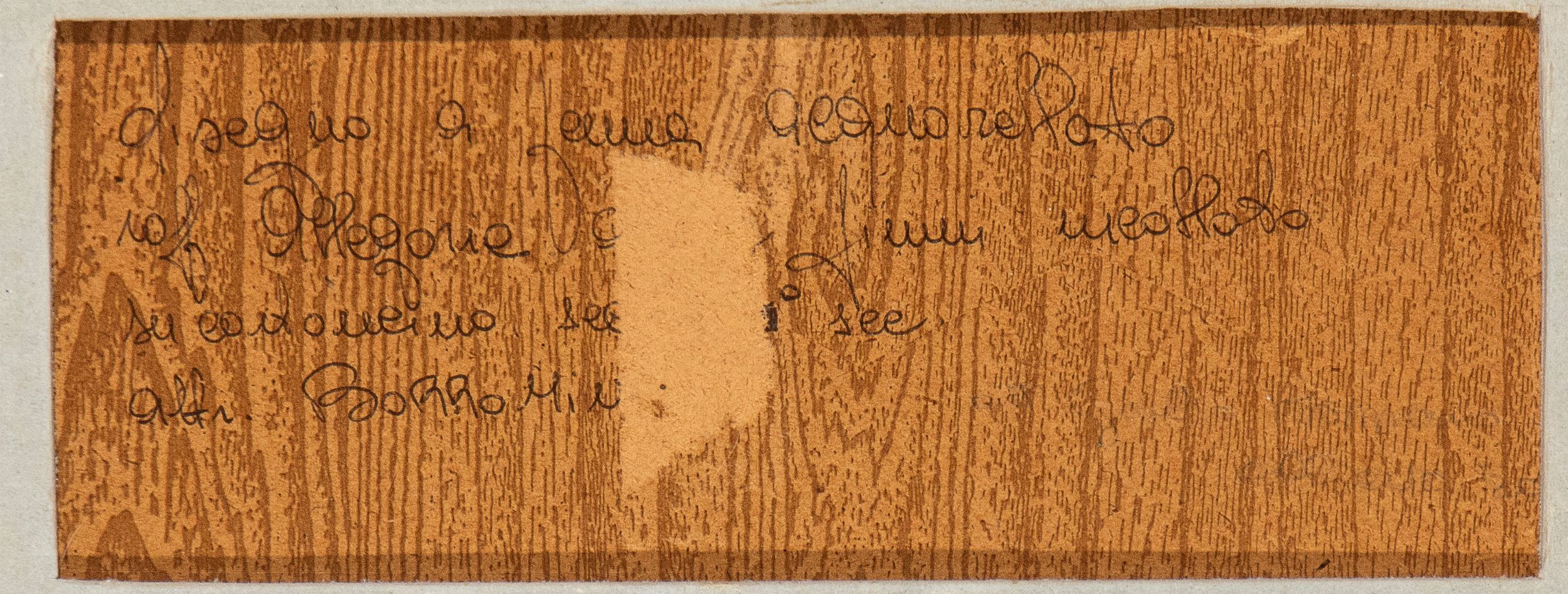 Penna, inchiostro e acquerello su carta applicata su cartoncino, cm. 26x34. Con cornice