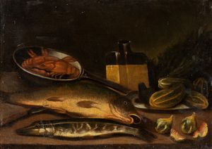 Ritratto di giovane gentildonna con pane, pesci e fiori