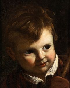 Ritratto di fanciullo con cappello piumato e collana d'oro
