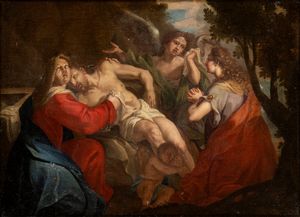 Olio su tela, cm. 48x73. Con cornice In questo incantevole dipinto, destinato senza dubbio alla devozione privata [..]