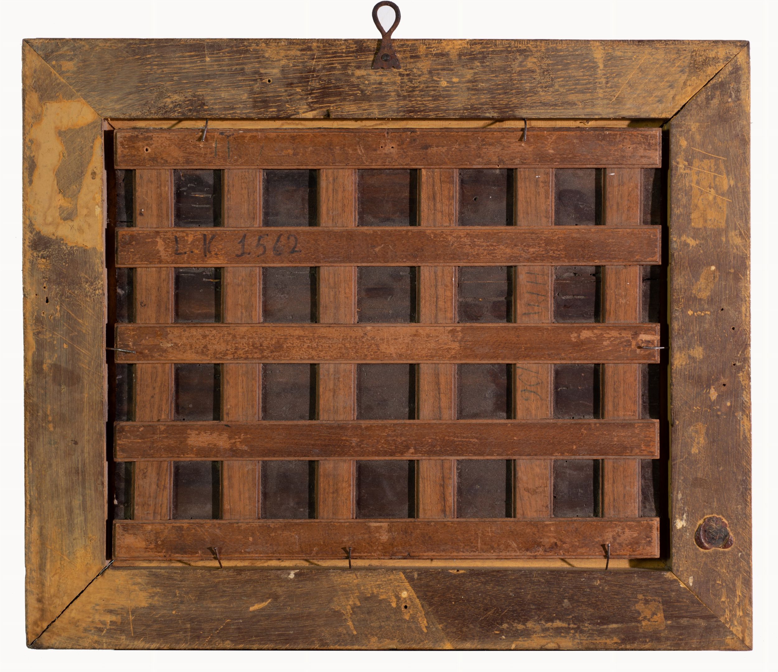 Olio su tavola, cm. 32x40. Con cornice Questo dipinto riprende un soggetto di genere particolarmente caro ai seguaci di Caravaggio in un inconsueto formato ridotto e adottando un altrettanto inusuale supporto su tavola. I riferimenti figurativi più agevolmente riscontrabili sono costituiti dal romano Angelo Caroselli e dal suo allievo il lucchese Pietro Paolini, entrambi posizionati in modo assai libero e decentrato rispetto alle correnti più ortodosse del caravaggismo internazionale.