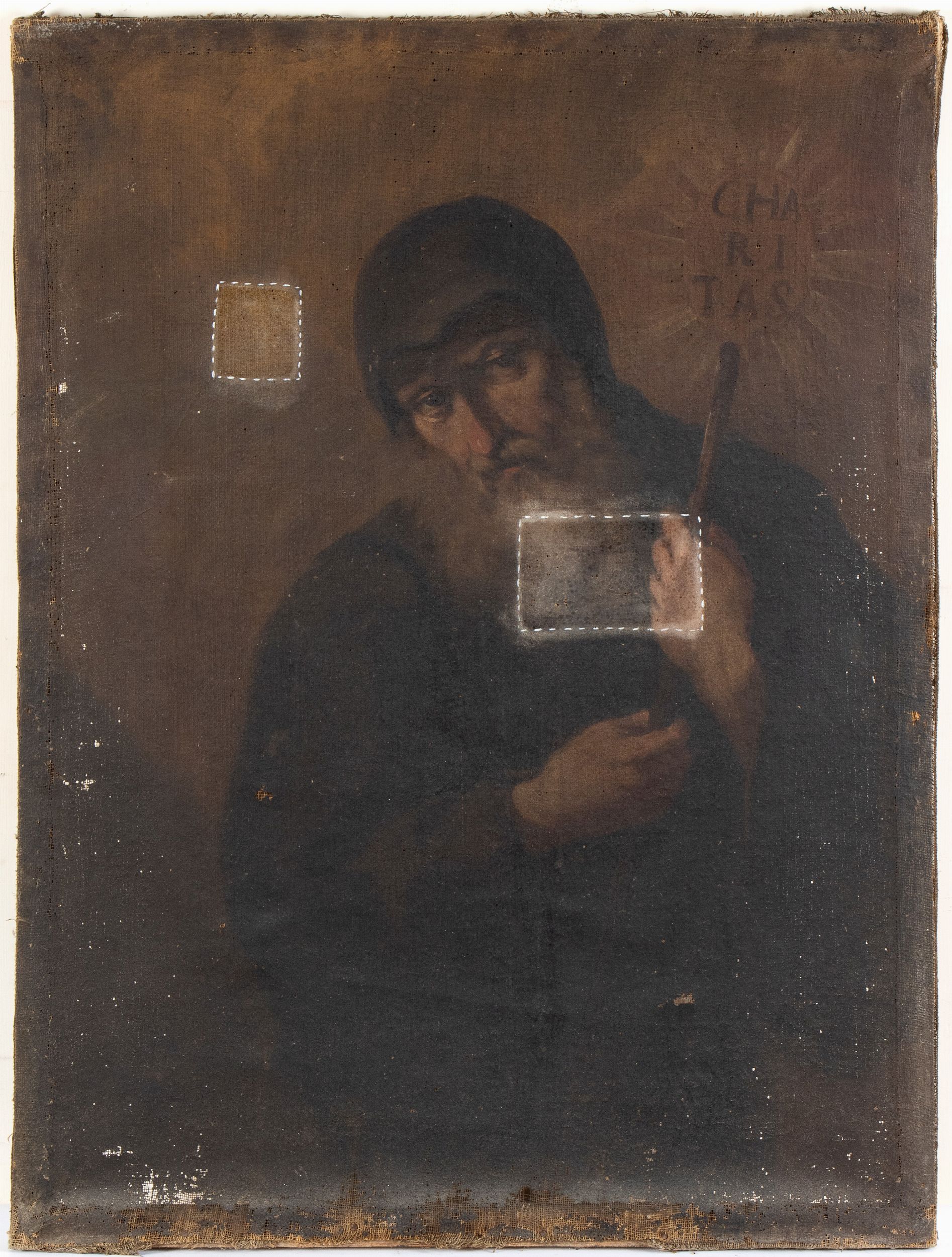 Il dipinto è presentato con due prove di pulitura ben visibili dalla foto
