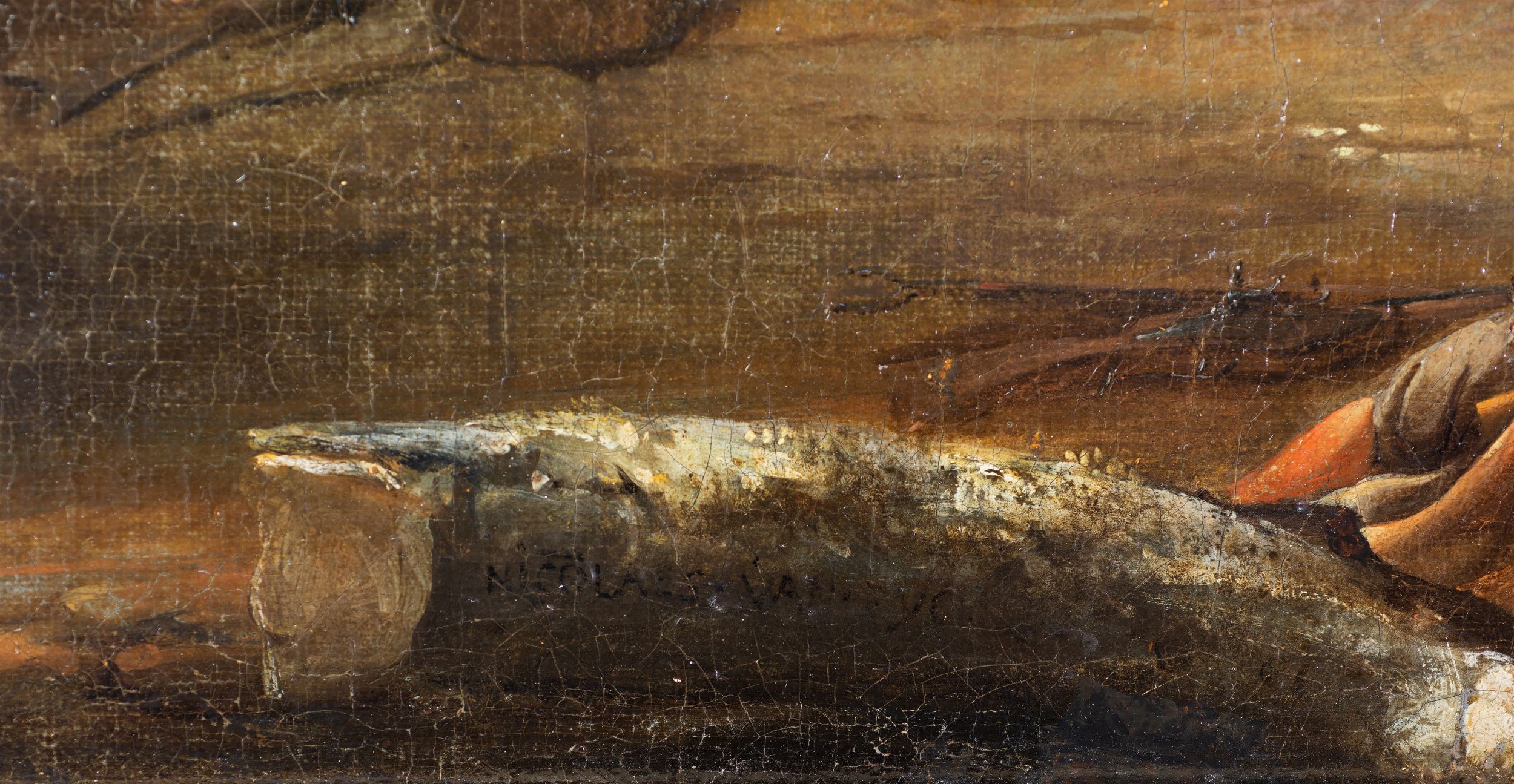 Il dipinto reca firma in basso al centro, sul tronco d'albero: NICOLAAS VAN EYCK.
