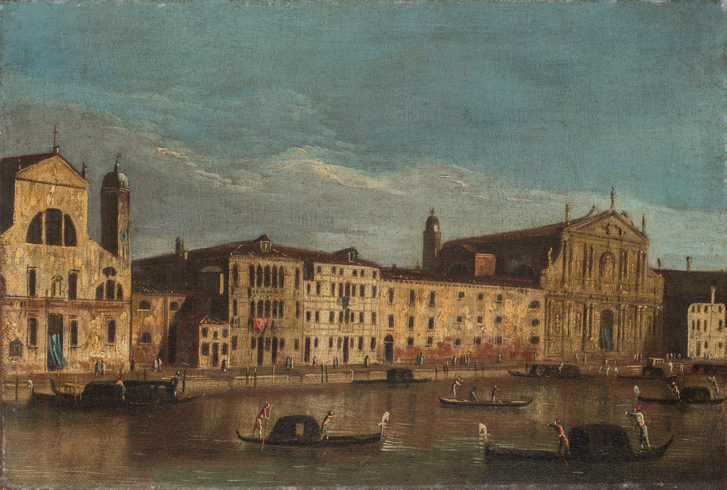 Questo veduta, piuttosto rara fra le molteplici prospettive del Canal Grande prese a soggetto dai pittori di vedute del Settecento, va ascritta ad un pittore attivo intorno alla metà del secolo nella cerchia di Canaletto (il quale personalmente non realizzò mai una veduta col medesimo scorcio di Venezia, che include la facciate sia della distrutta chiesa di Santa Lucia sia di Santa Maria di Nazareth detta degli Scalzi). Vari indizi stilistici, dalle filiformi figurette alla predilezione per gamme cromatiche brune, potrebbe essere identificato nel cosiddetto Maestro della Fondazione Langmatt (probabilmente Apollonio Domenichini, Venezia, 1715 - 1770). Un Veduta molto simile alla nostra, di misure leggermente più ampie, è conservata nei depositi della National Gallery of Scotland di Edimburgo come opera di seguace di Canaletto (NG 2014).
