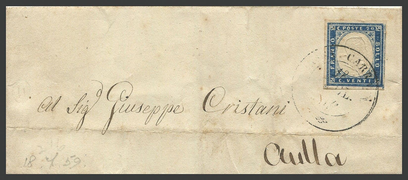 1859, Sardegna, Oltreappennino Modenese, lettera da Massa Carrara per Aulla del [..]