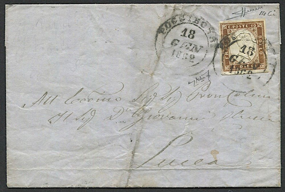 1862, Sardegna, 10c, bruno cioccolato scuro (S. 14 Ci)