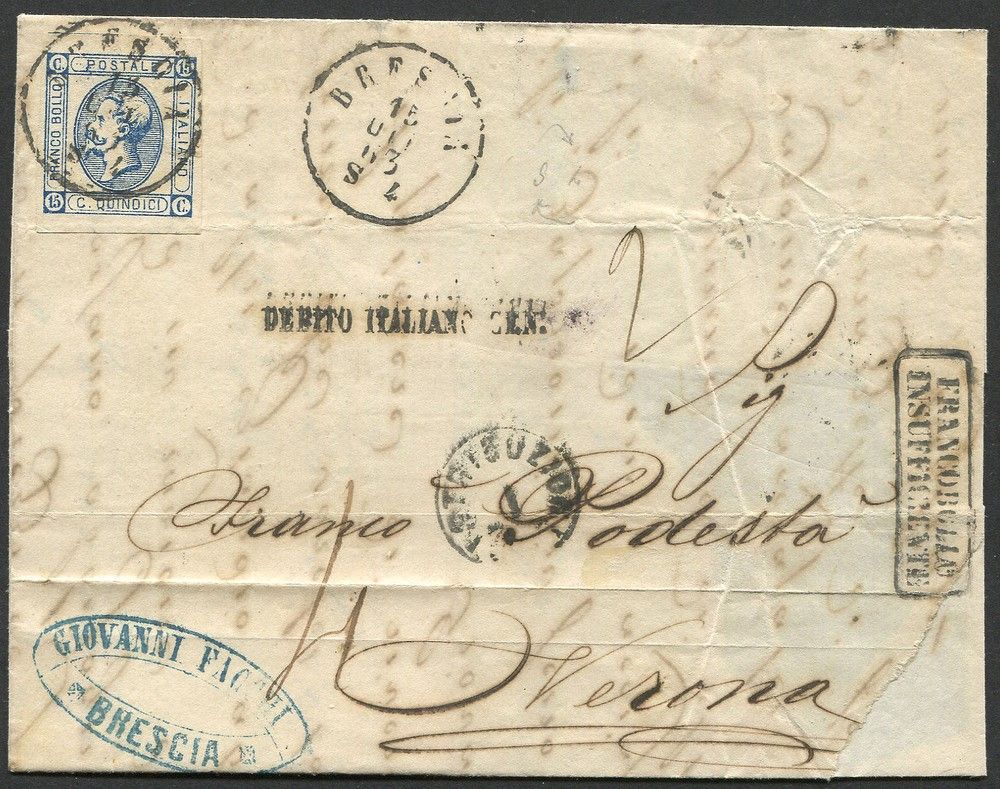 1863, Regno d’Italia, tre lettere dalla I distanza italiana alla I o II distanza [..]