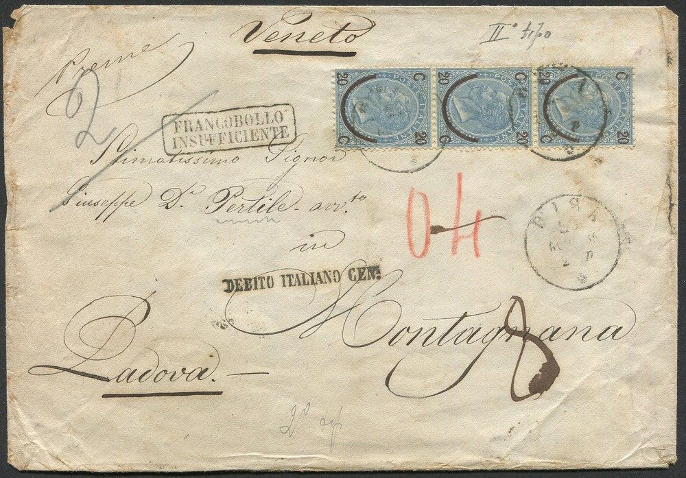 1865, Regno d’Italia, lettera da Pisa per Montagnana del 25 agosto 1865
