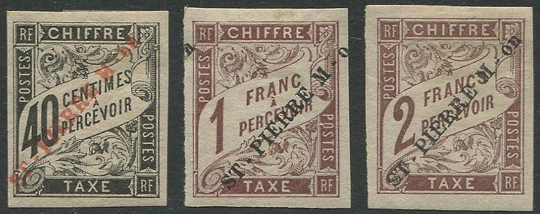 1893, Saint-Pierre-et-Miquelon, segnatasse con sovrastampa in rosso