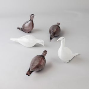 lunghezza cm 23altezza cm 16 Lotto formato da cinque colombe in vetro soffiato, due con decoro di filigrana lattimo [..]