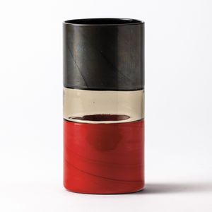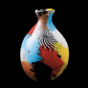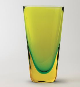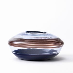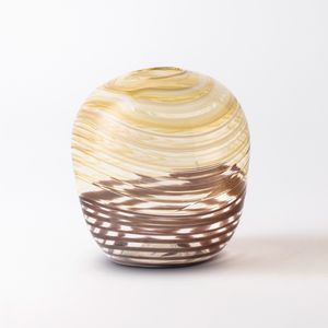 altezza cm 19,5diametro cm 19 Raro vaso serie A Fili a sezione ovale in vetro soffiato paglierino con decoro di [..]