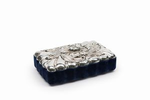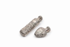 in argento, Peso lordo g 252,80 cm 14,50-8,00 Inghilterra, XIX secolo con boccette interne in vetro, difetti [..]
