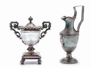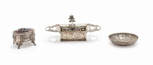 in argento e metallo argentato, Peso g 545,00 (comprensivo degli inserti non in argento) XX secolo composto [..]