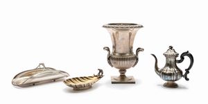 in argento e vermeil, Peso kg 2,110,30 cm 19,00x25,50-11,00x20,00-18,00-9,50x27,00 Italia, XX secolo un vaso [..]