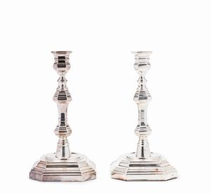 in argento, Peso lordo kg 1,472 (comprensivo delle basi appesantite) cm 25,00 Italia, XX secolo base ottagonale, [..]