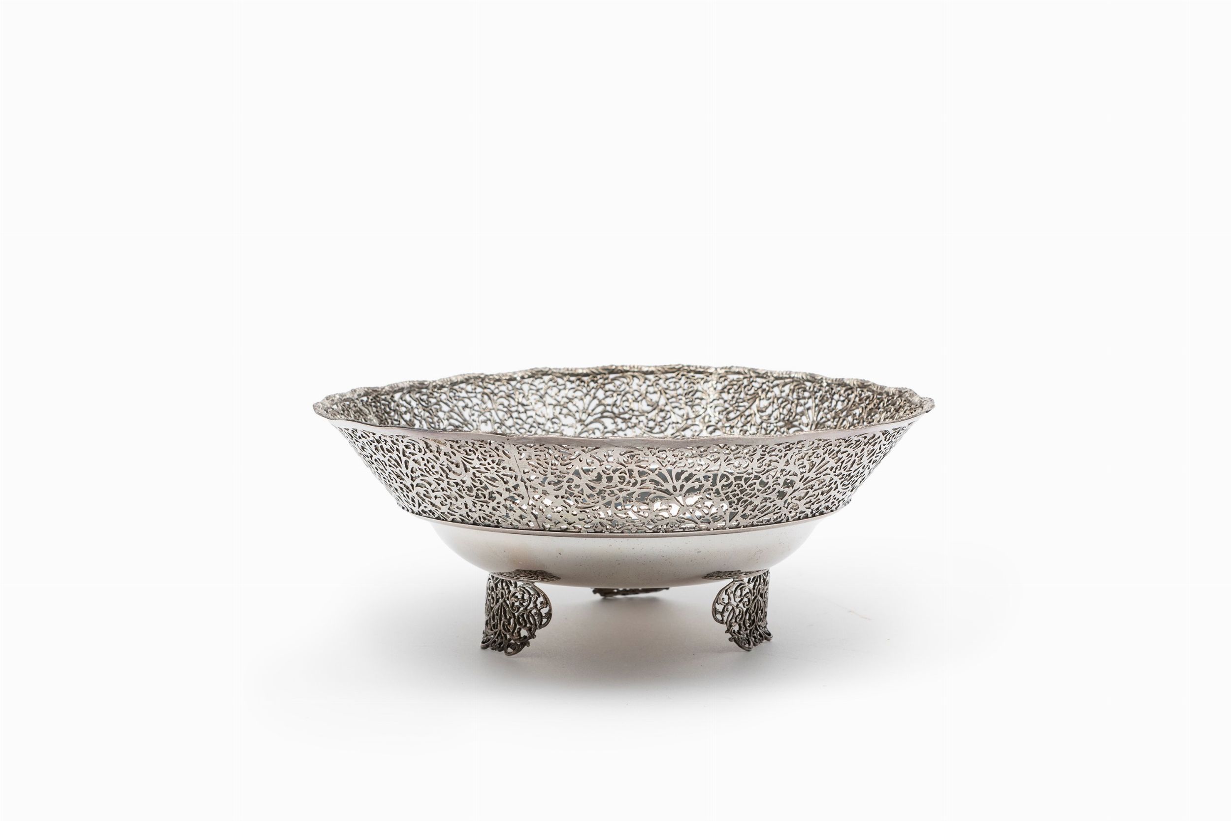 Italia, XX secolo poggiante su tre piedini, bordo riccamente traforato.