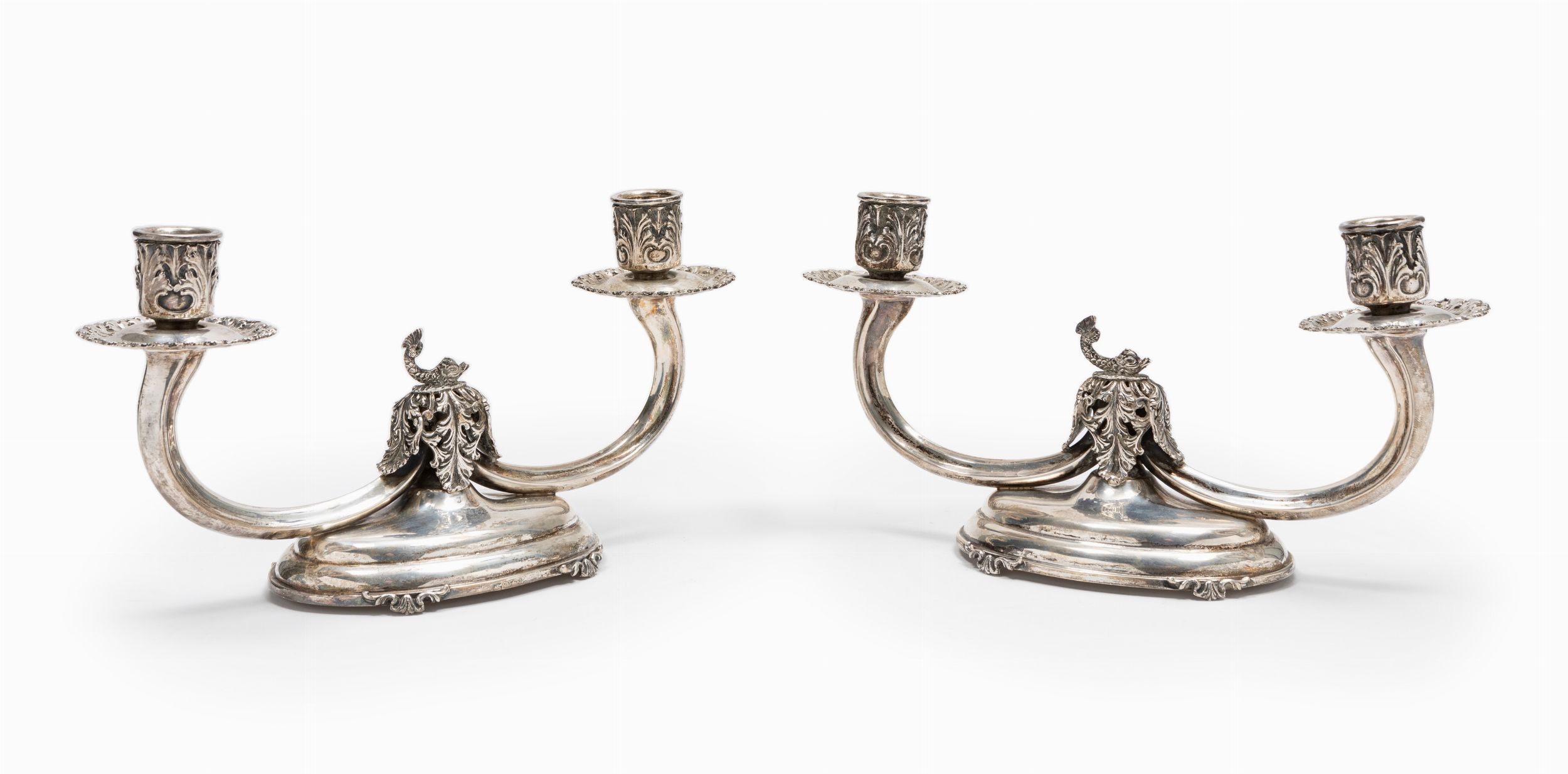 Italia, XX secolo a due fiamme, base ovale, al centro decoro a pellacce e delfino.