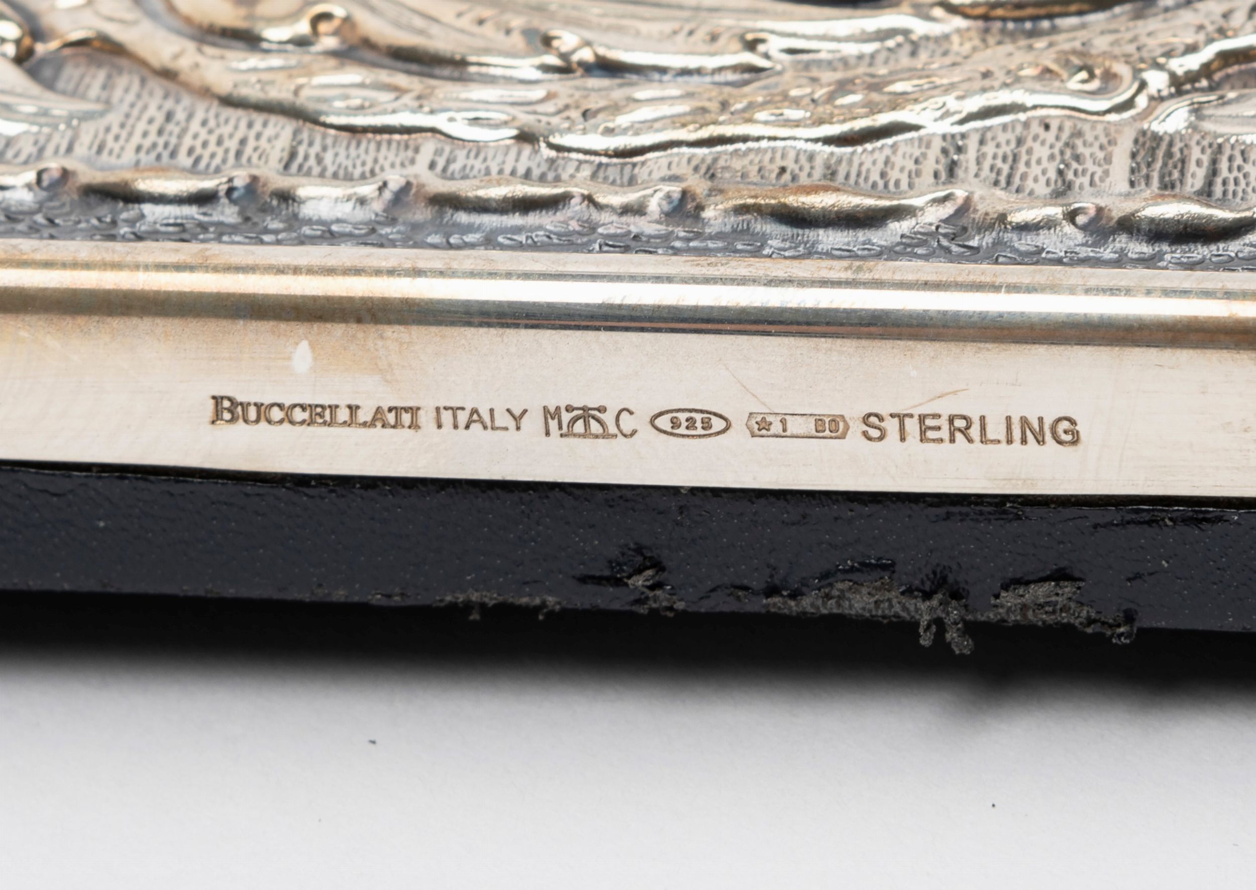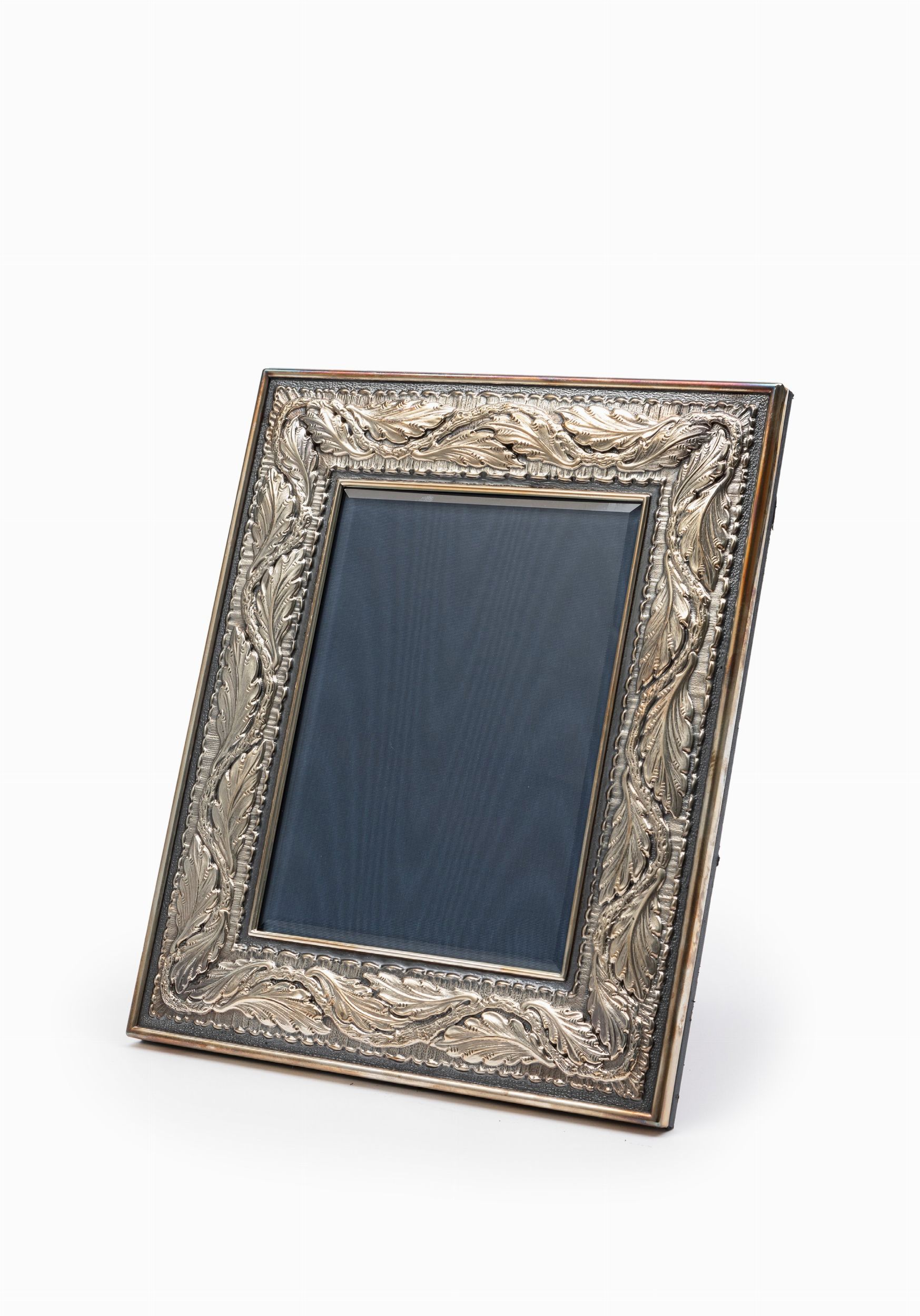 Italia, XX secolo decoro a rilievo con motivo a foglie, retro in pelle blu e legno, con scatola originale e garanzia, condizioni pari al nuovo.