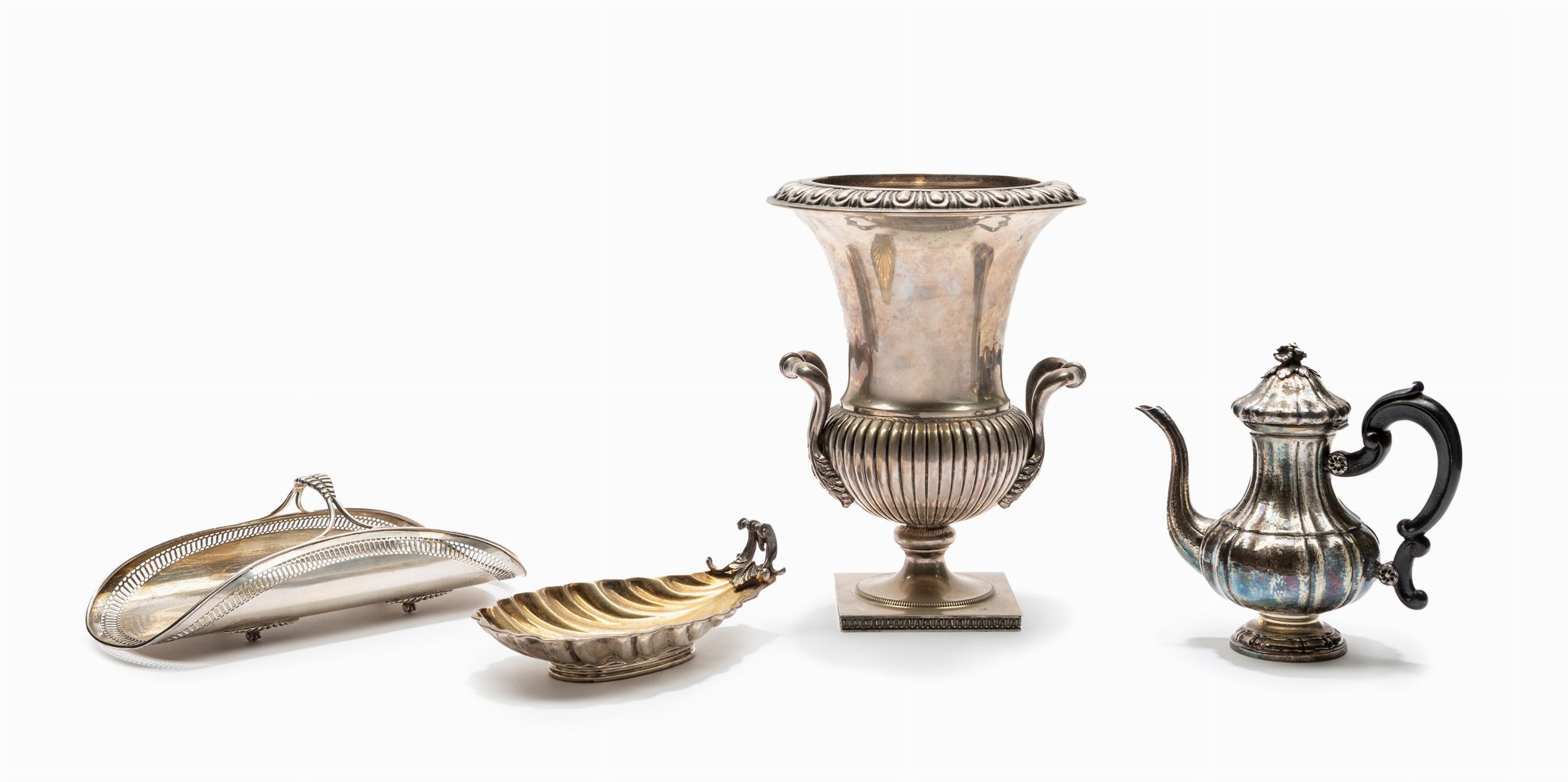 in argento e vermeil, Peso kg 2,110,30 cm 19,00x25,50-11,00x20,00-18,00-9,50x27,00 Italia, XX secolo