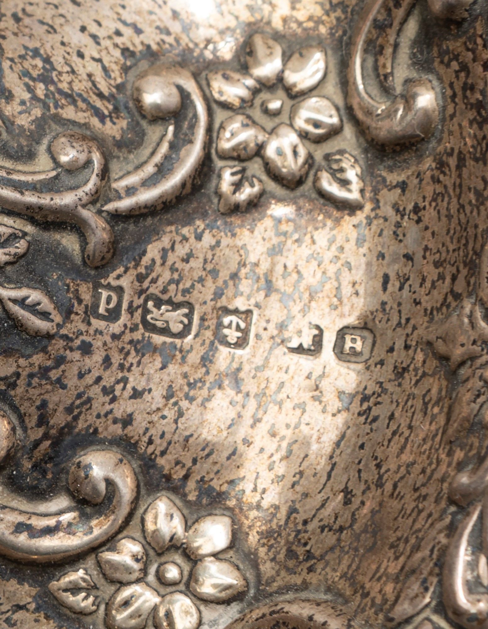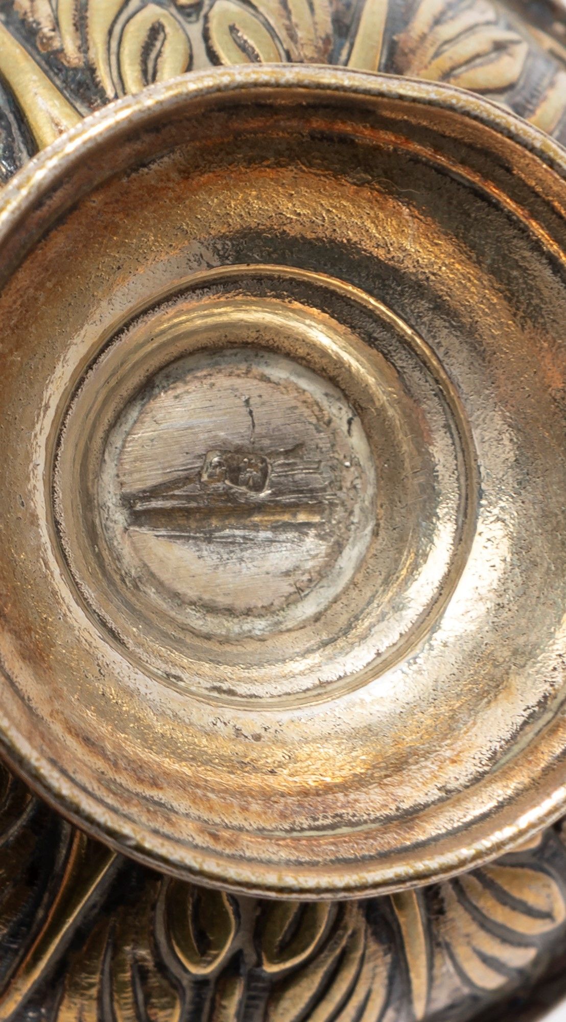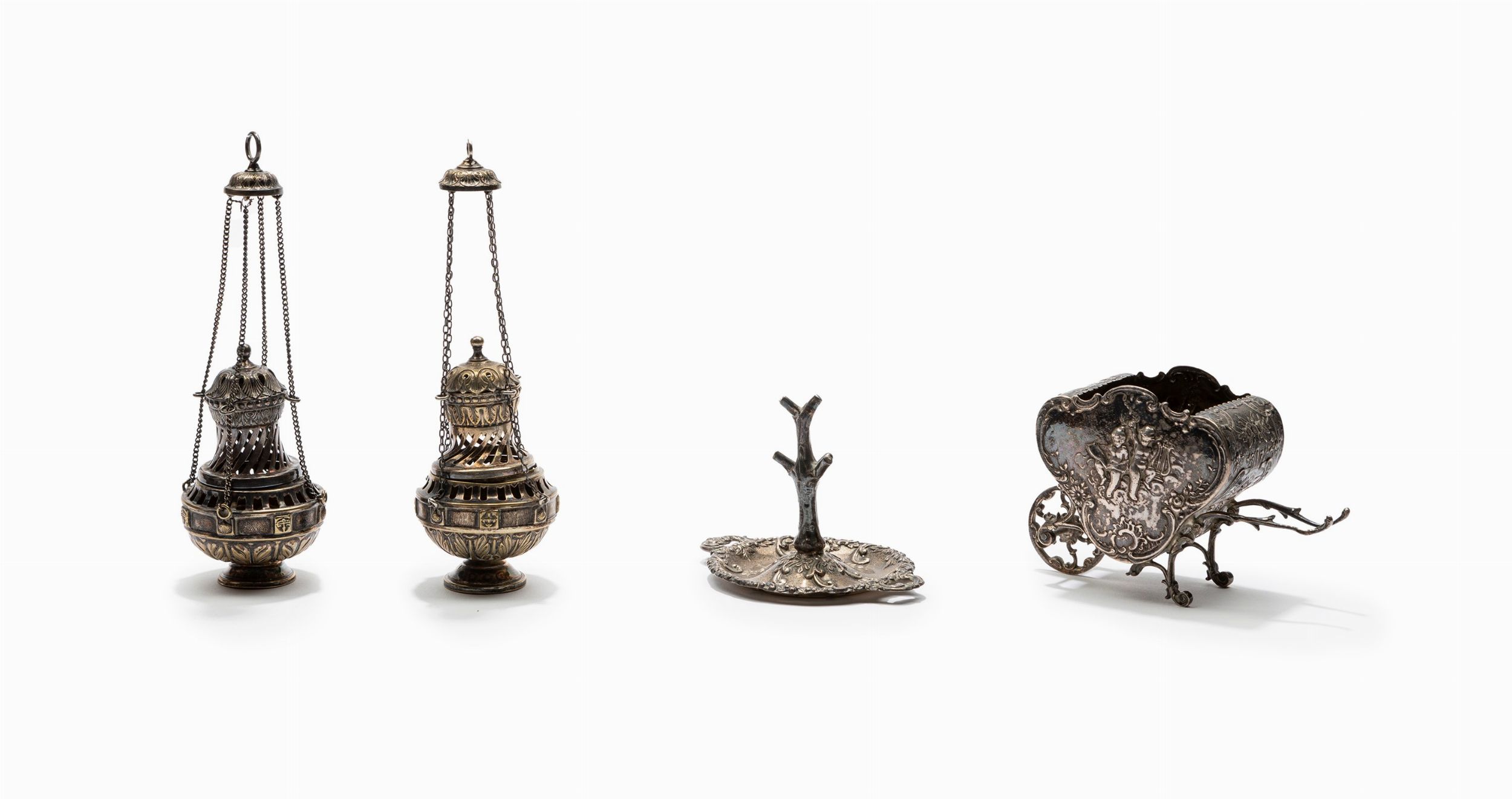 inizi XX secolo composto da una carriola, un porta anelli e due piccoli incensieri in argento sbalzato e cesellato.