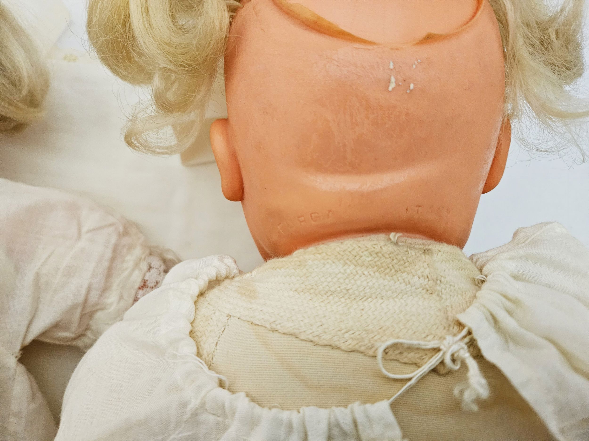 Italia, Anni Sessanta con biancheria e copertina originale, restauri, Andrea con difetti, parte posteriore della testa parzialmente staccata