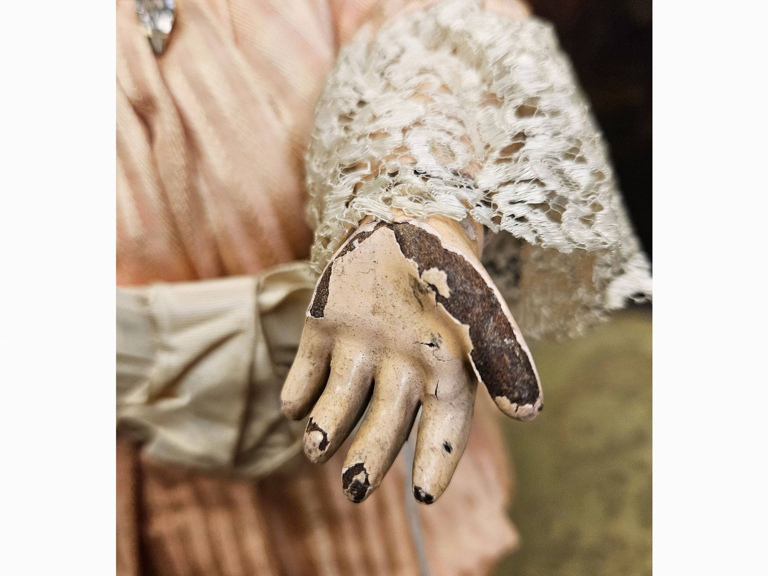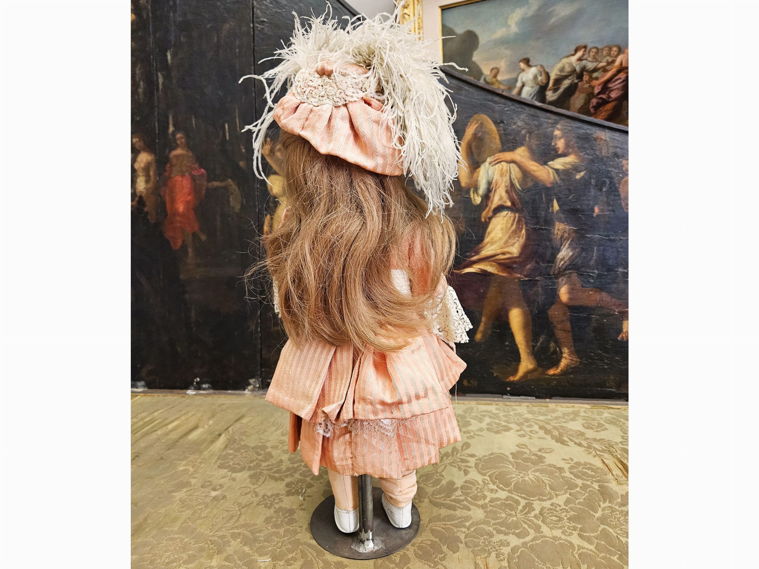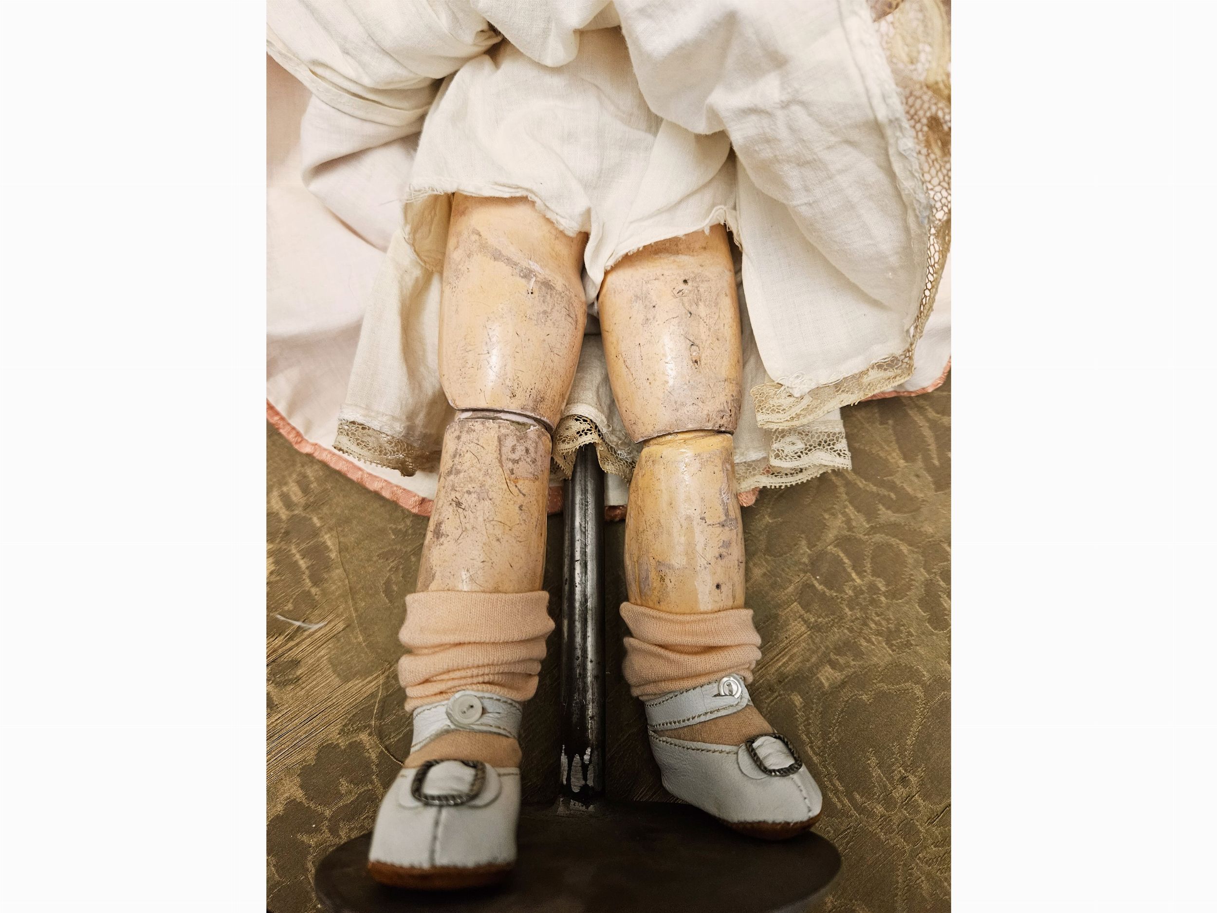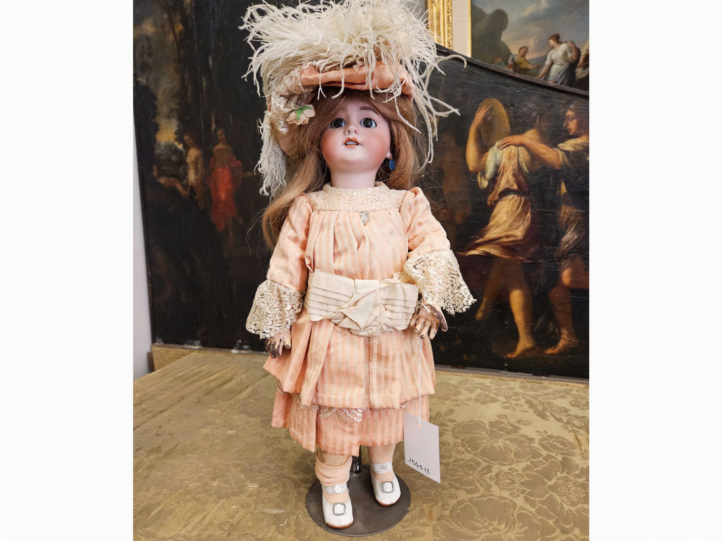 Germania, inizi del XX secolo con testa in biscuit, occhi mobili in vetro, bocca aperta con dentini, orecchie forate, parrucca di capelli, corpo articolato in composizione, difetti (in particolare mani sbeccate)