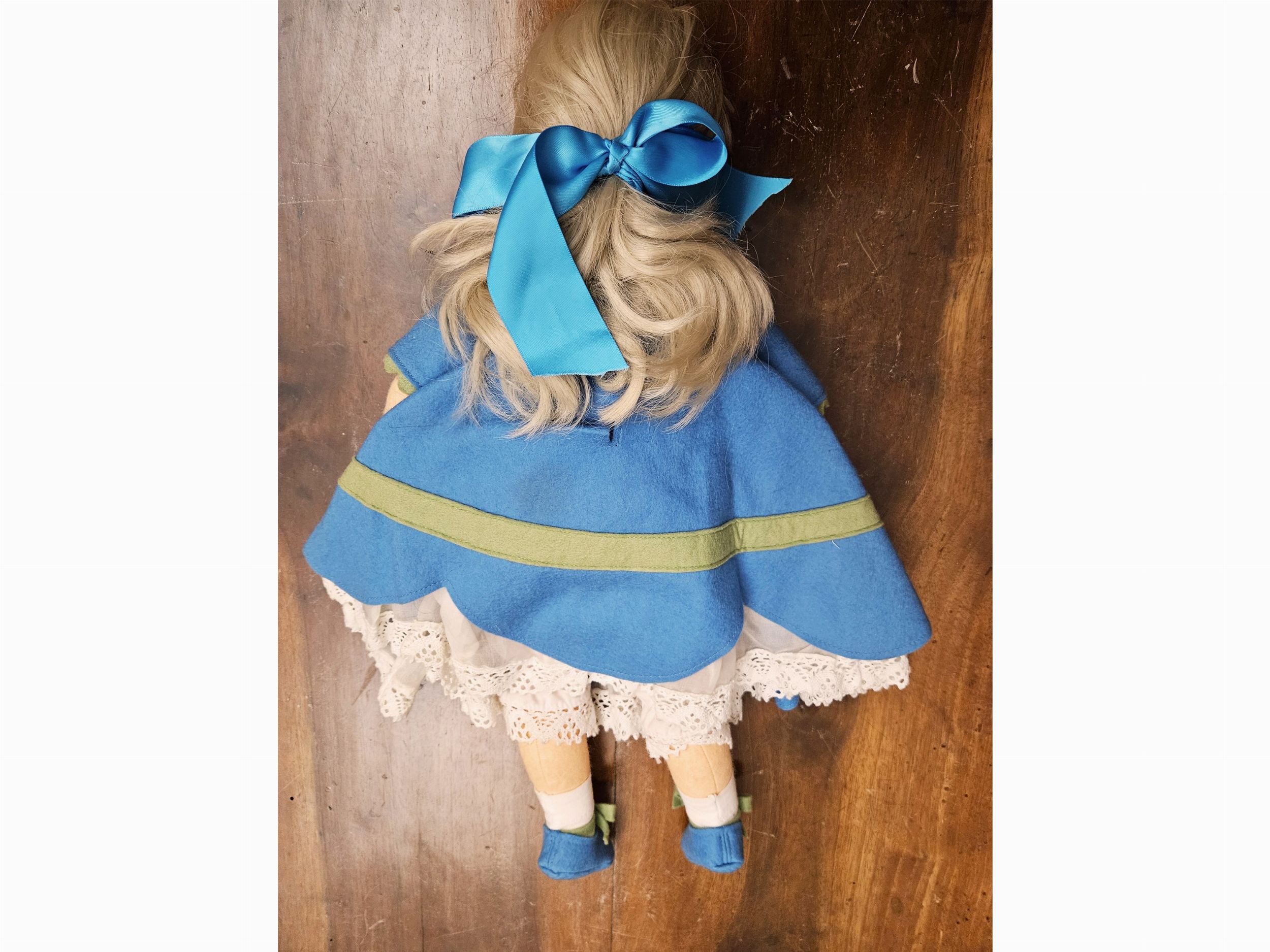 Italia, Anni Novanta testa in feltro pressato, viso dipinto, parrucca di capelli, corpo imbottito, abiti originali con etichetta Ars Lenci Torino New York, Paris, London