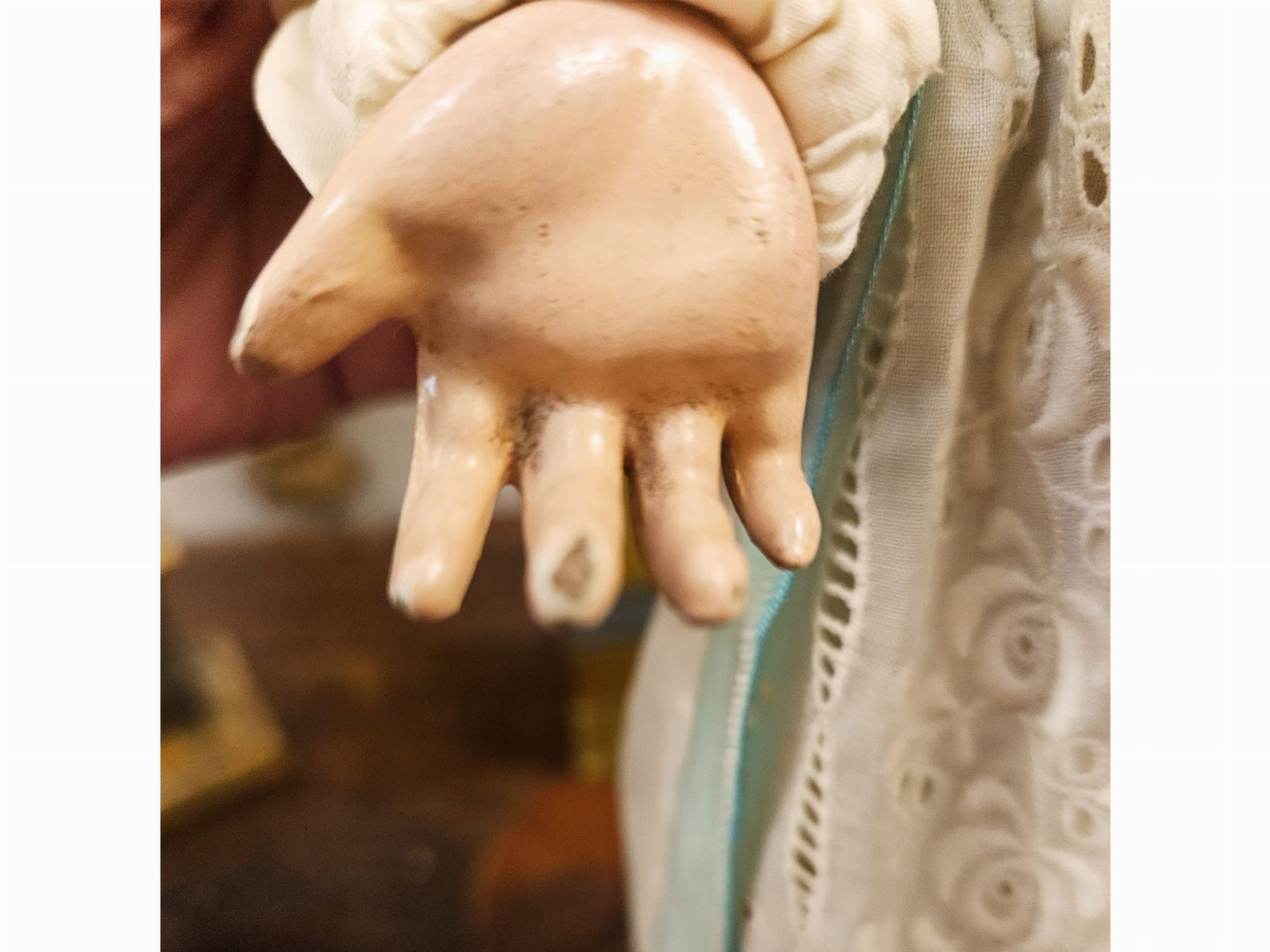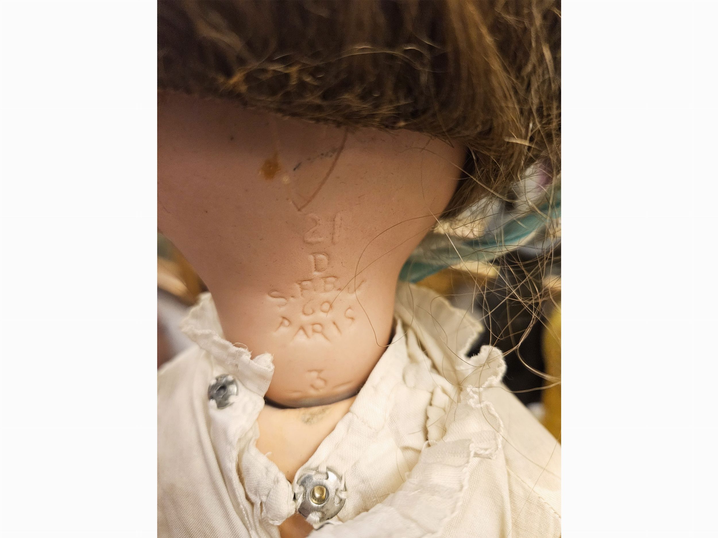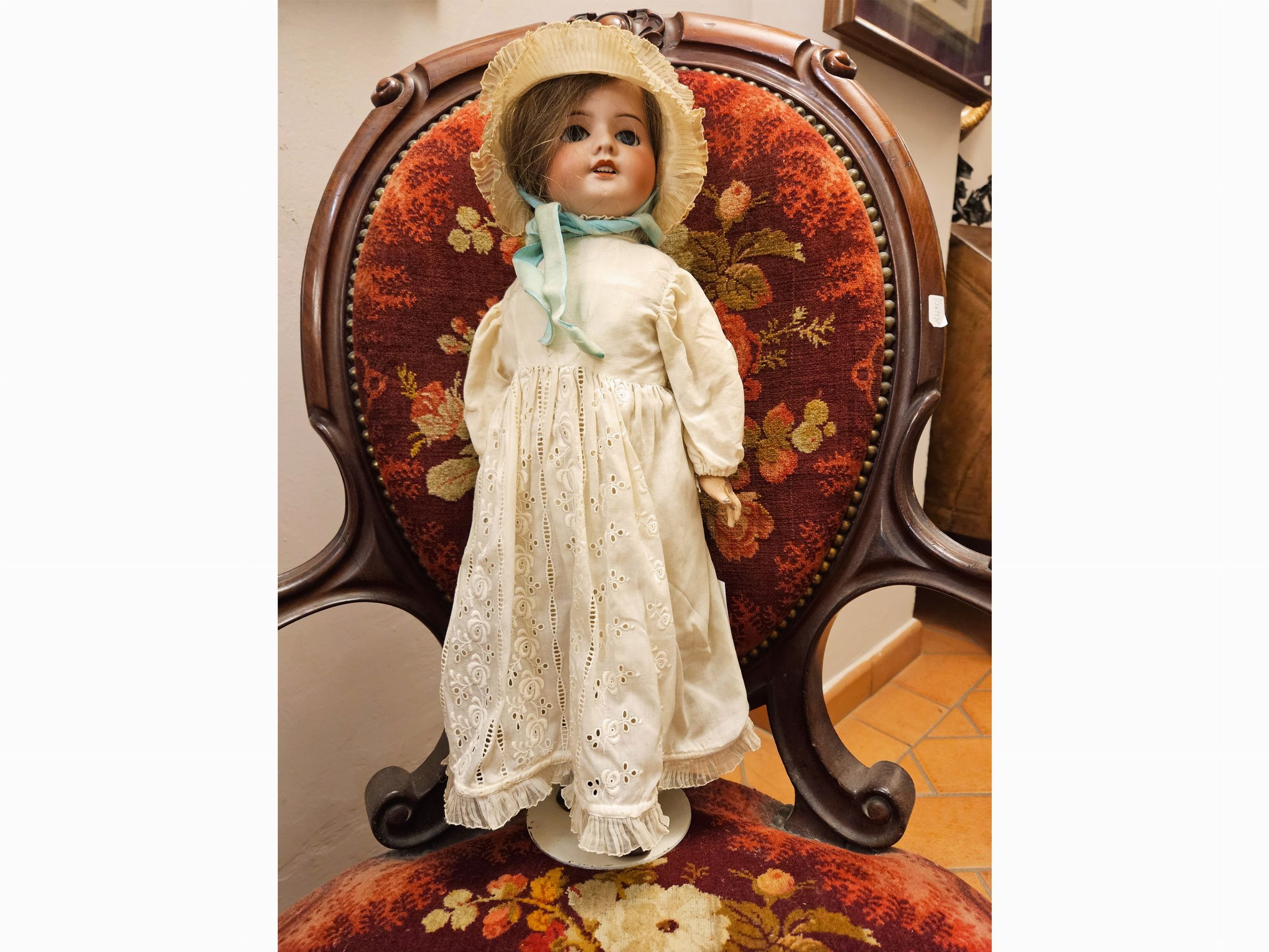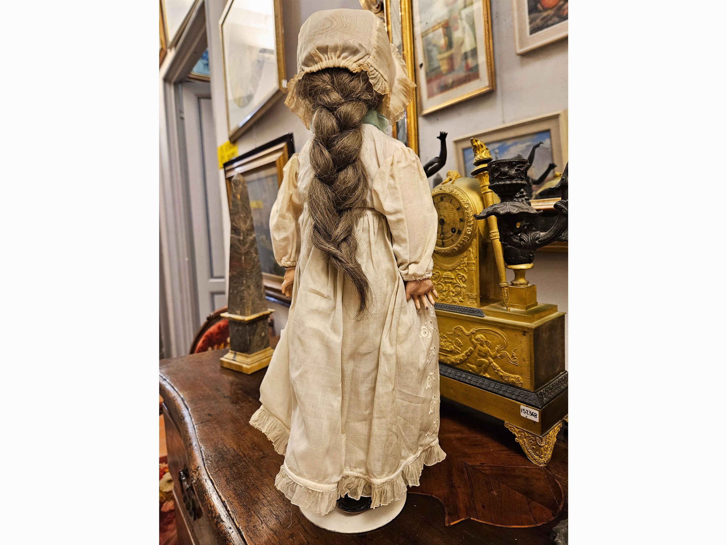 Francia, inizi del XX secolo con testa in biscuit, occhi mobili in vetro con ciglia applicate, bocca aperta con dentini, parrucca di capelli, corpo articolato in composizione, lievi difetti (in particolare sbeccature alle mani
