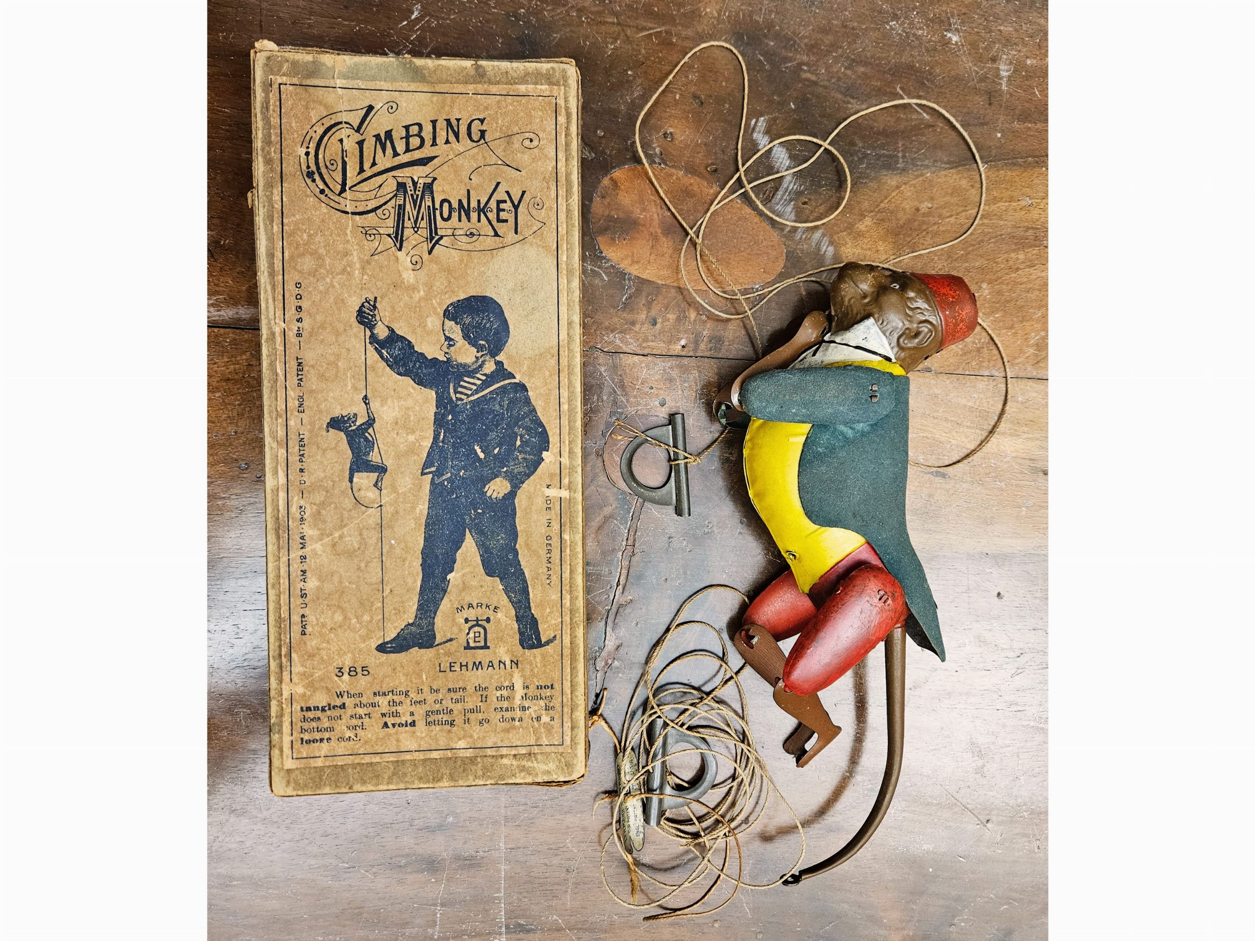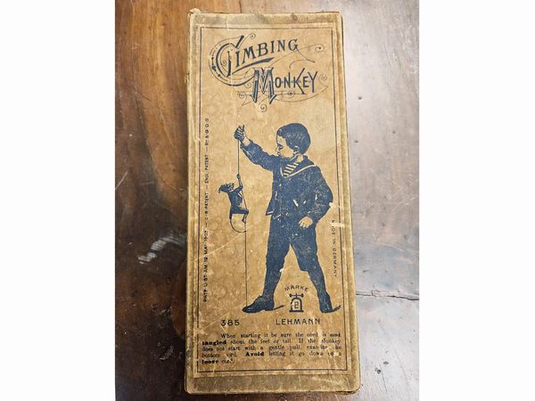 Germania, 1905 in stagno dipinto, con scatola originale, meccanismo funzionante con azione di arrampicata ma spago inferiore sfilato