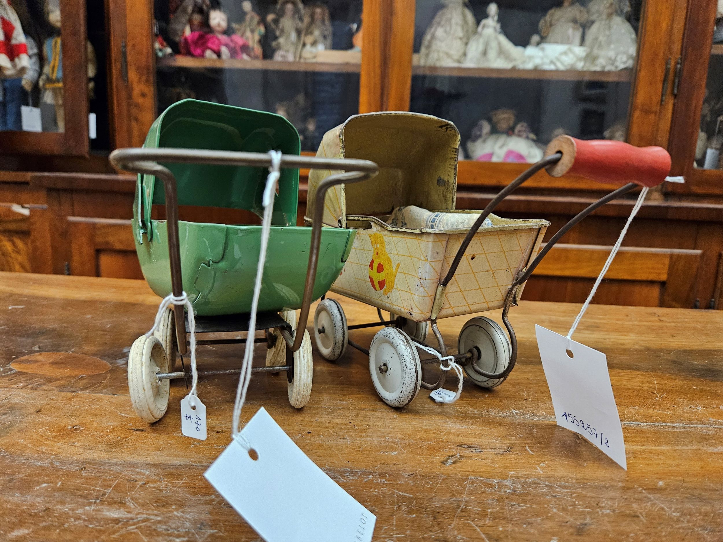 USA, Anni Quaranta del XX secolo una con cuscinetto d'epoca e ruote di latta, l'altra con ruote di gomma, recanti il marchio, con lievi difetti