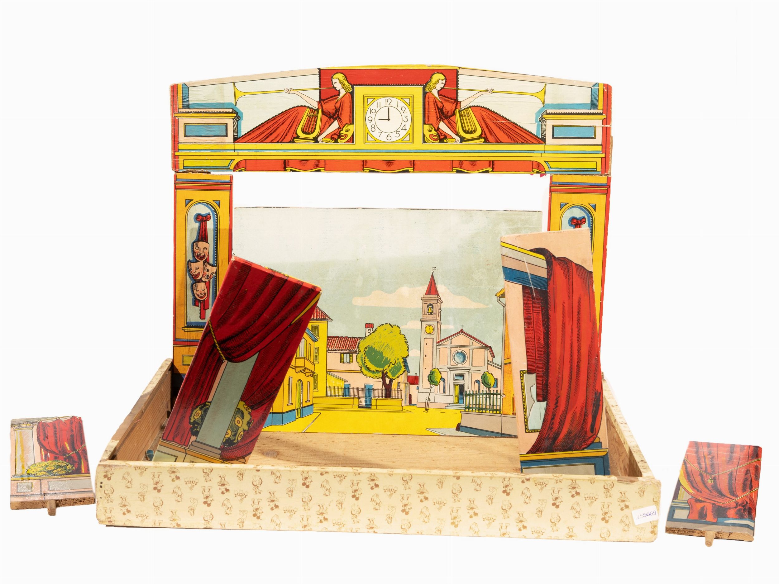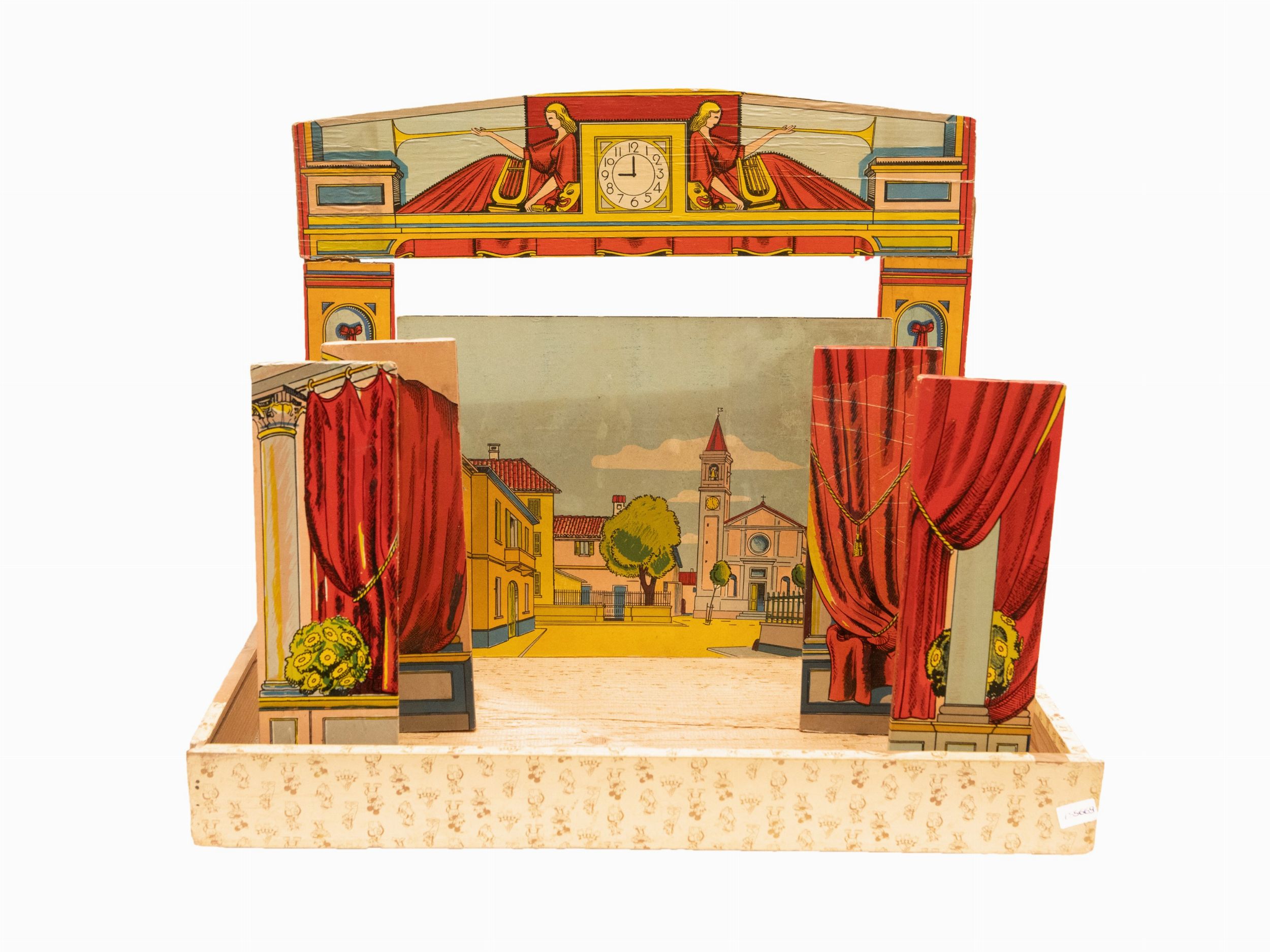 1954/55 teatrino in legno con decorazioni in carta applicate