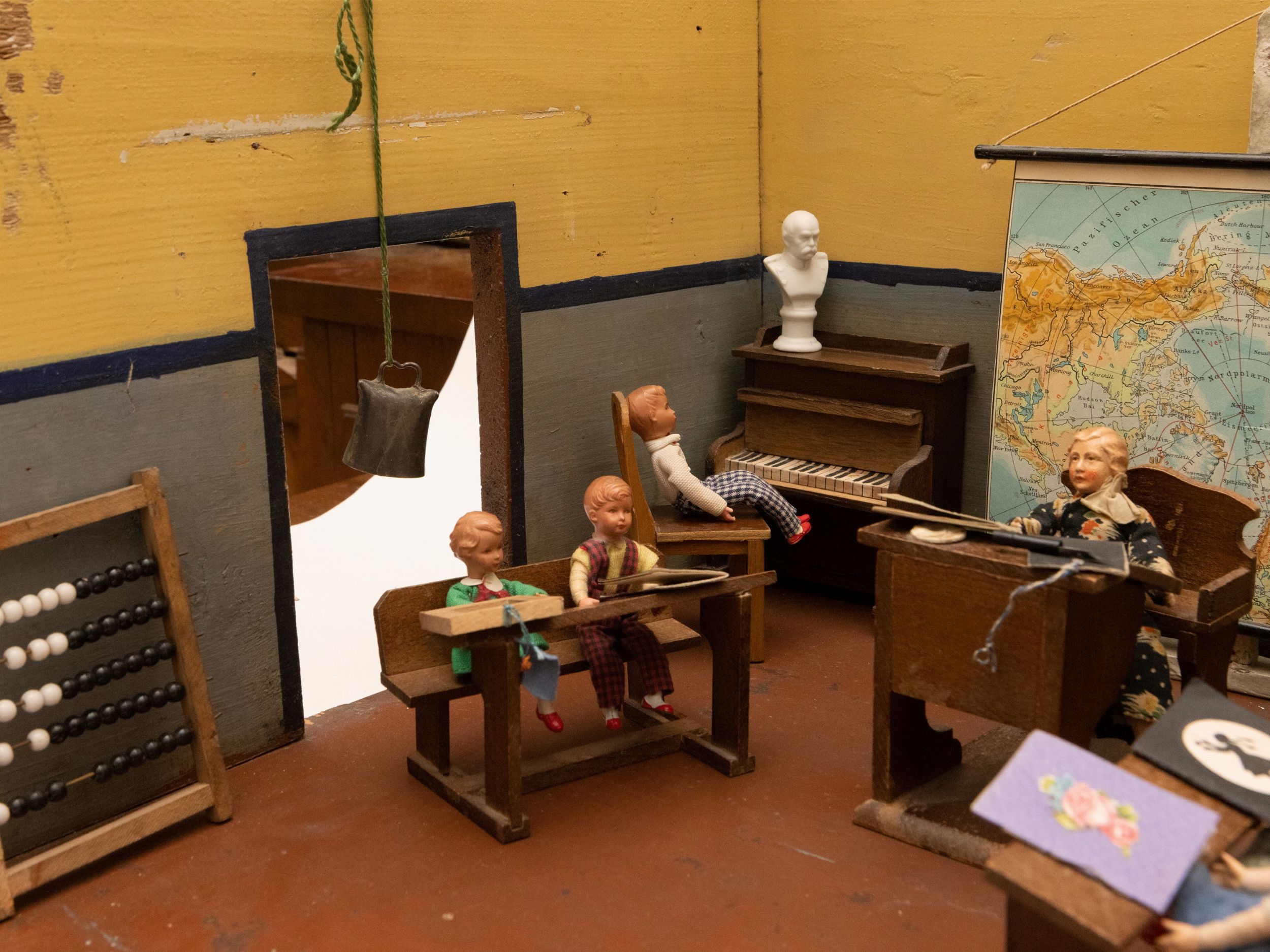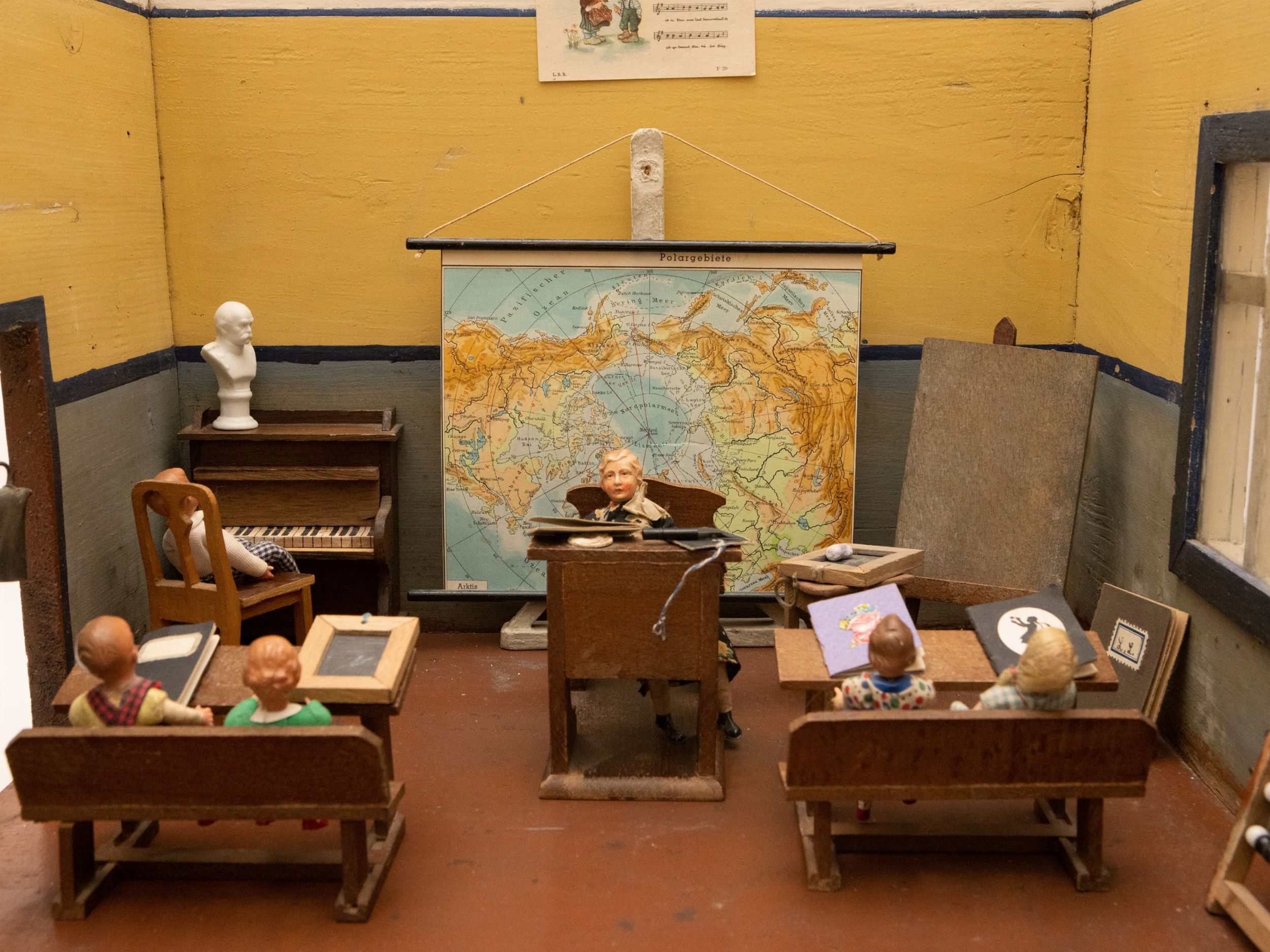 Germania, Anni Venti del XX secolo riprodotti in maniera realistica (quaderni, piccole lavagne con gessetto, ecc.), aula e banchi in legno, personaggi in celluloide, lievi difetti
