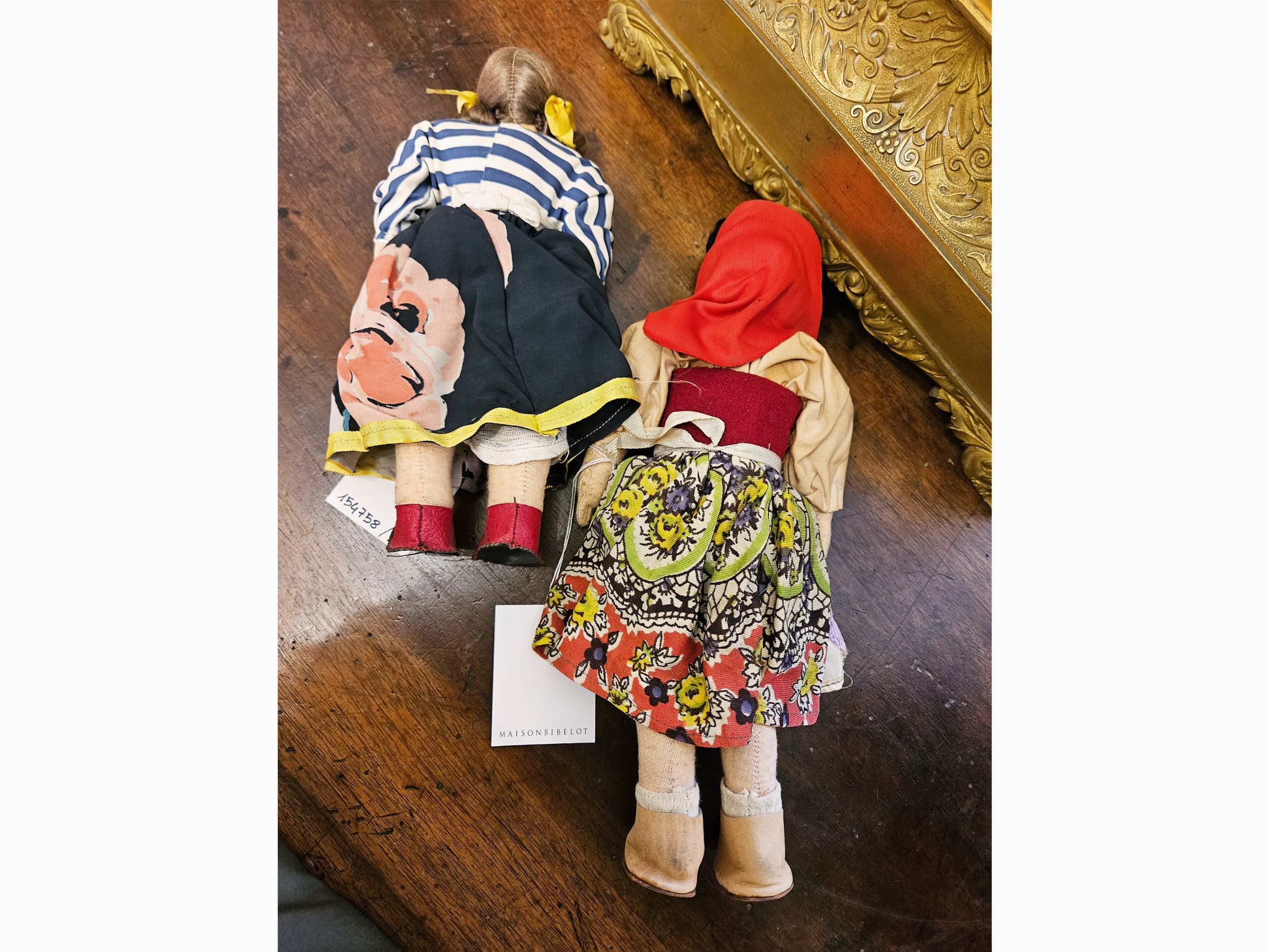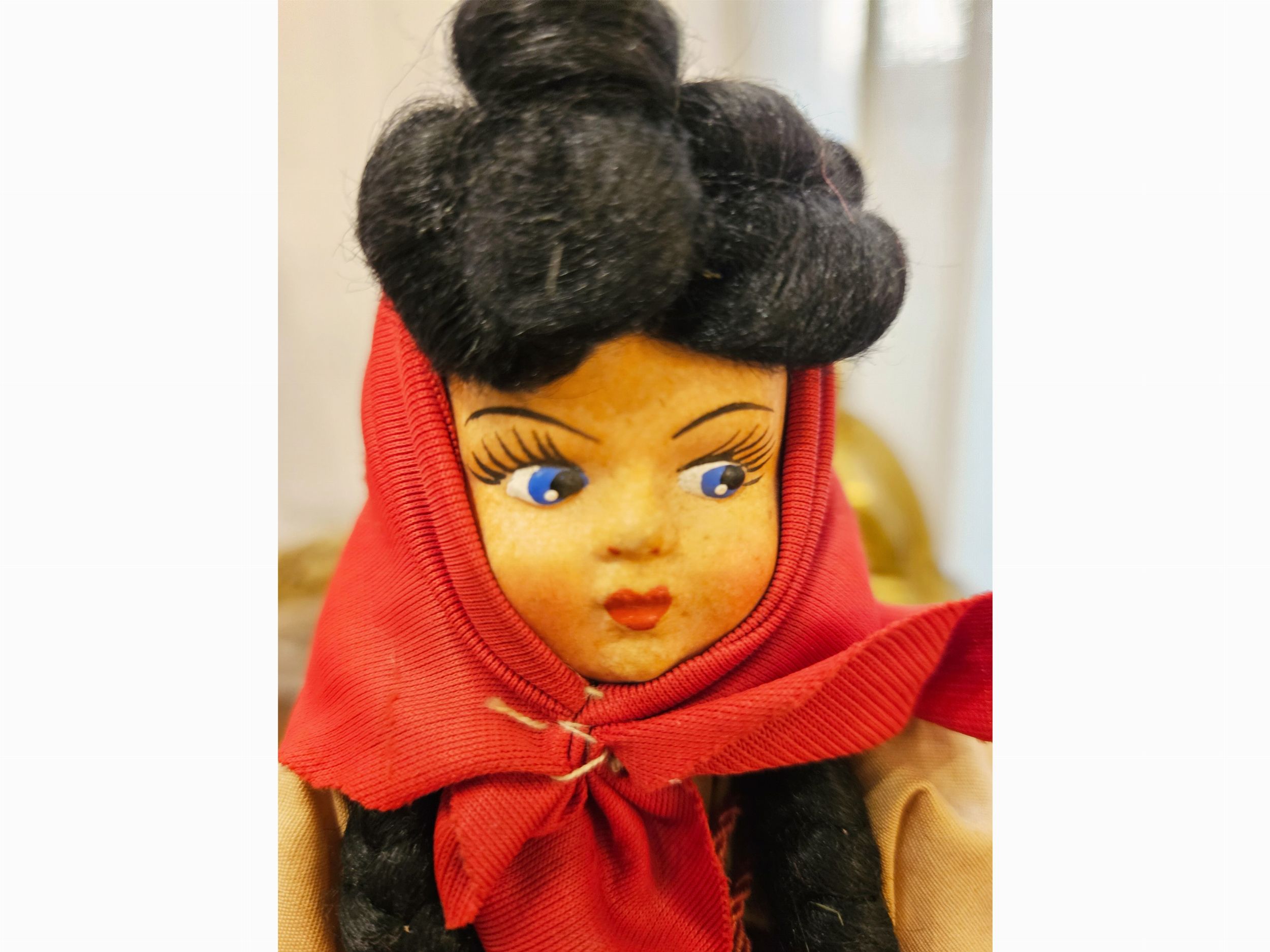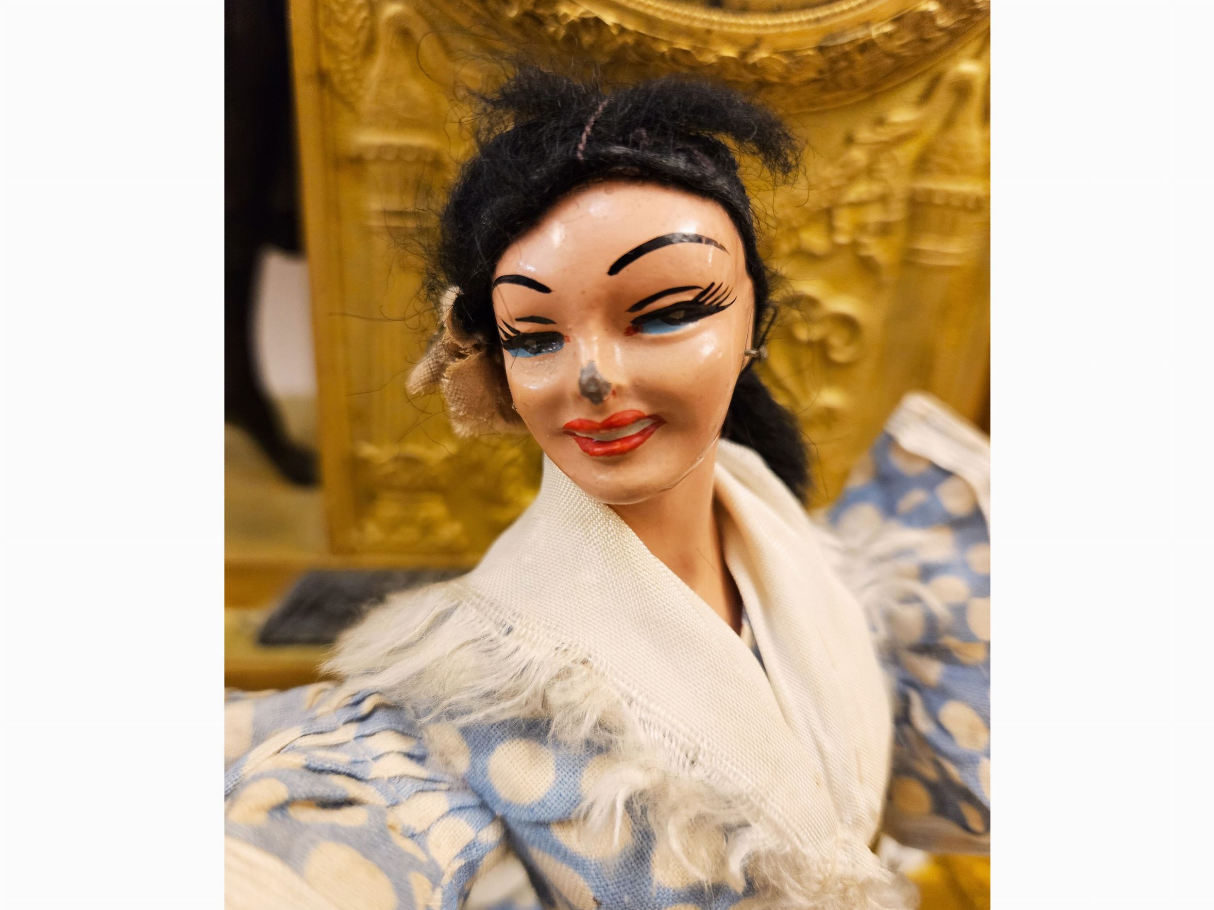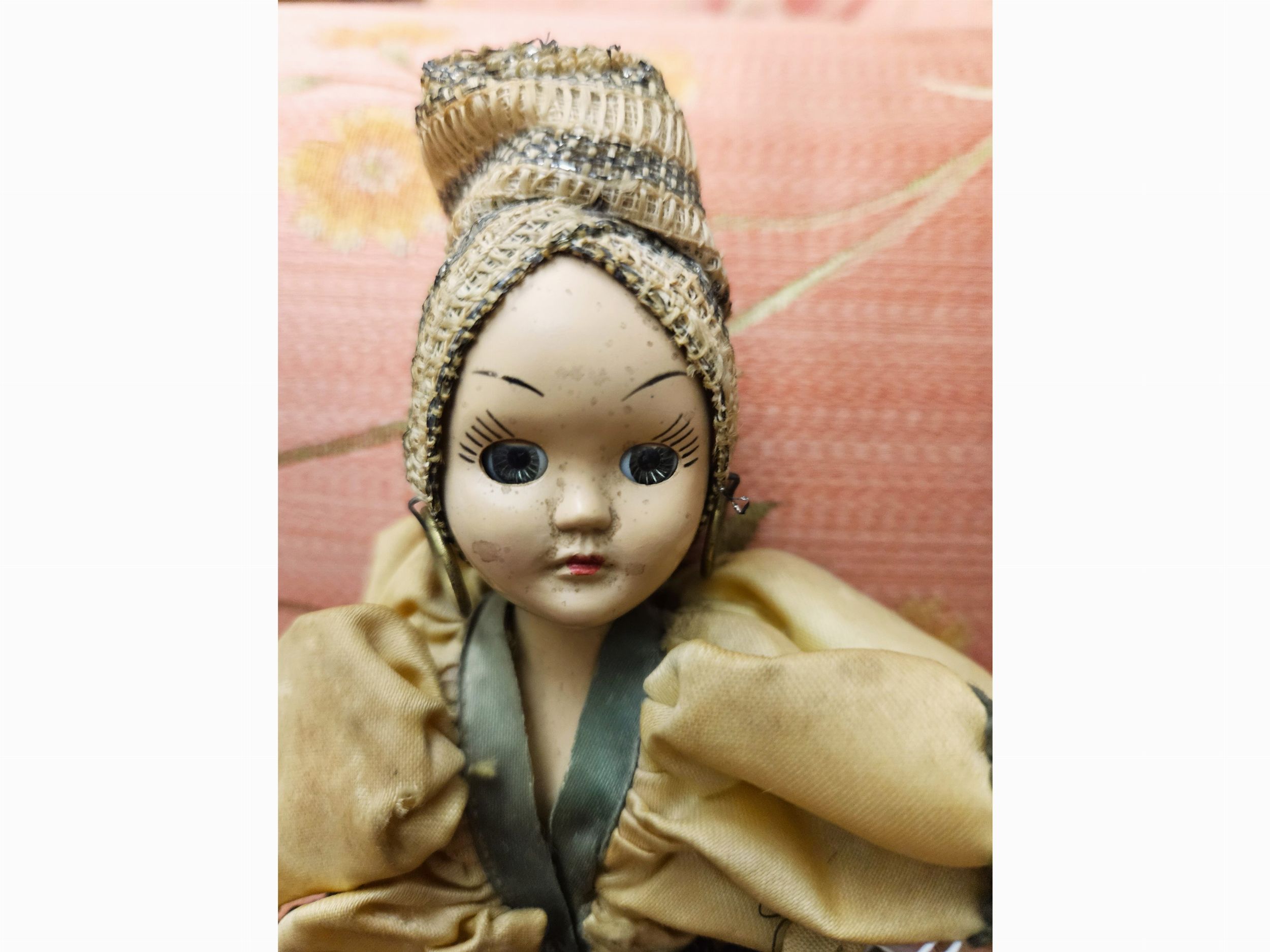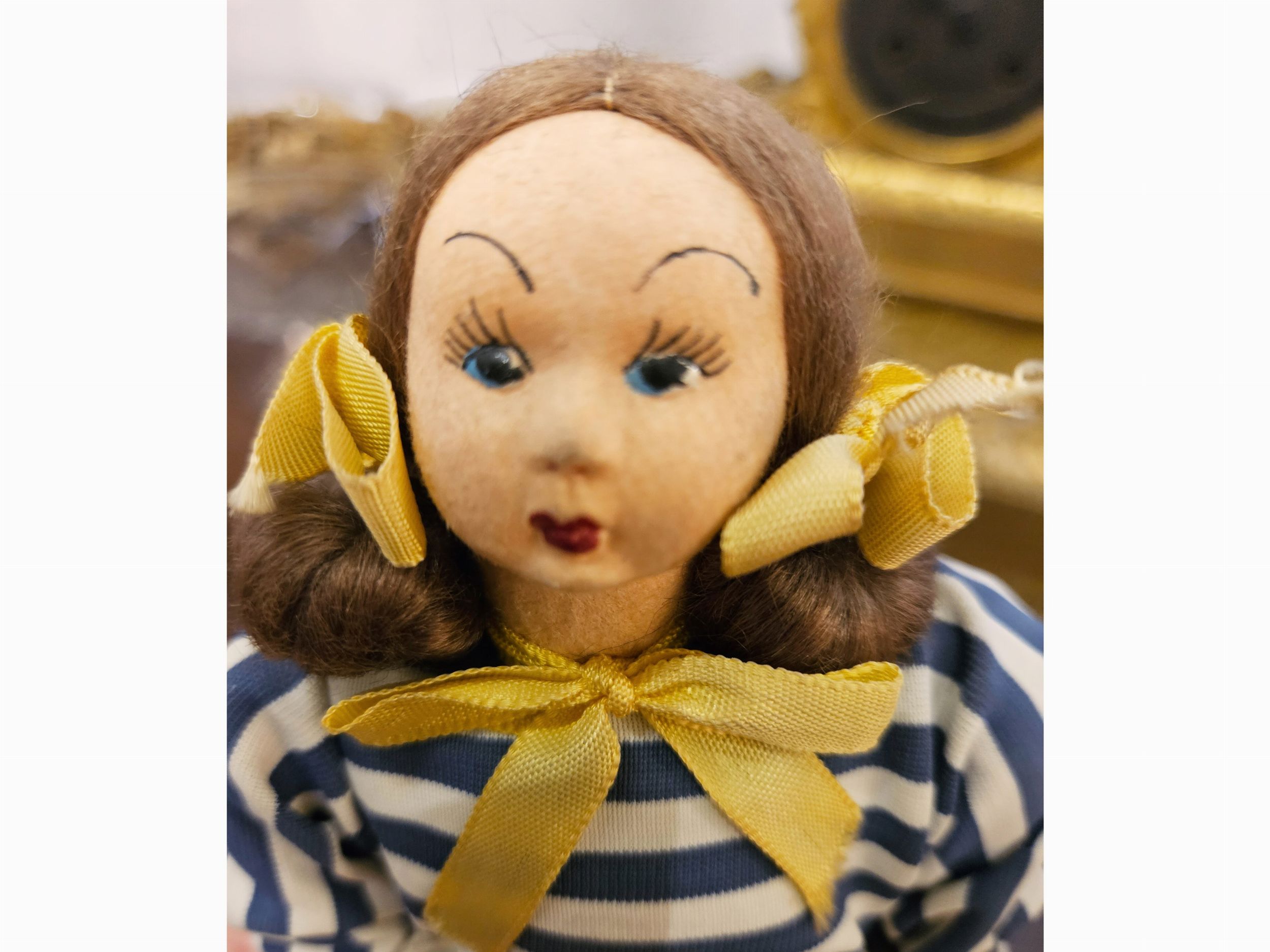 con visi in celluloide o in feltro pressato, parrucche in mohair, corpi in celluloide o in feltro imbottito, difetti