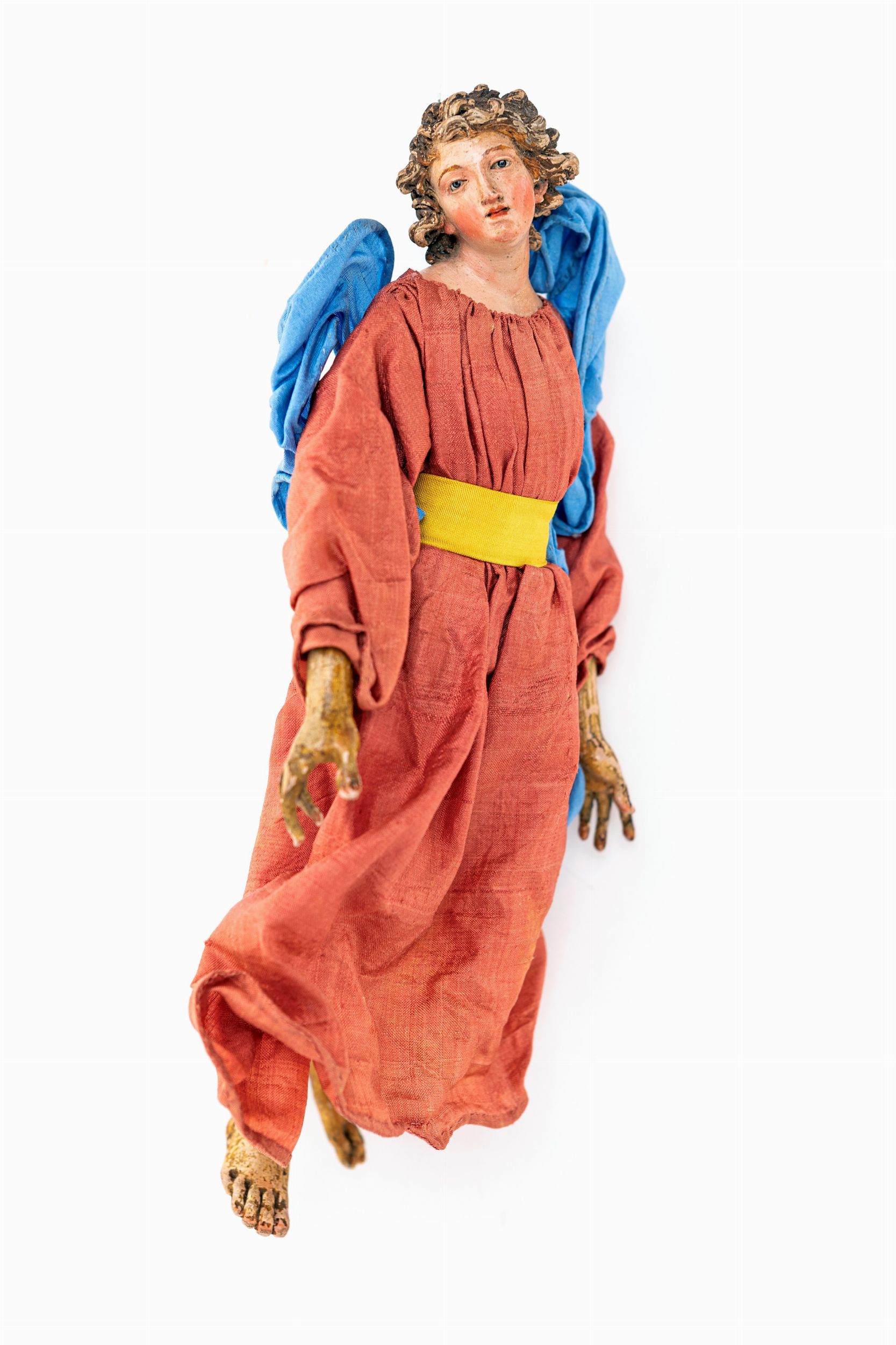 lunga tunica rosa con fusciacca gialla e svolazzi azzurri. Difetti e mancanze