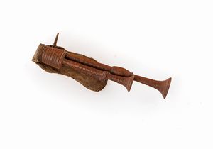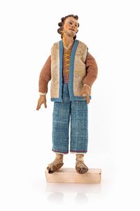 altezza cm 25 XX secolo camicia con gilet, pantaloni azzurri e ampio mantello in juta marrone, ciocie ai pied [..]