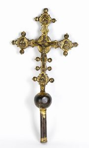 Altezza x larghezza: 17,5 x 11,5 cm. XIX secolo Tipica Croce Russa ortodossa in bronzo dorato e smalti policromi. [..]