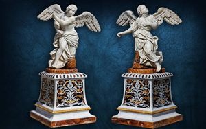 Altezza basi: 79 cm, altezza putti: 120 cm circa. Sicilia, XVII secolo Scolpiti a tutto tondo in pieno stile [..]