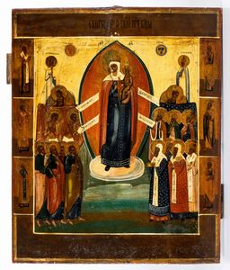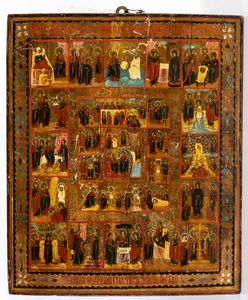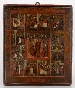Altezza x larghezza x profondità: 36,6 x 31 x 3 cm. XIX secolo L'icona rappresenta le dodici grandi feste dell’anno [..]