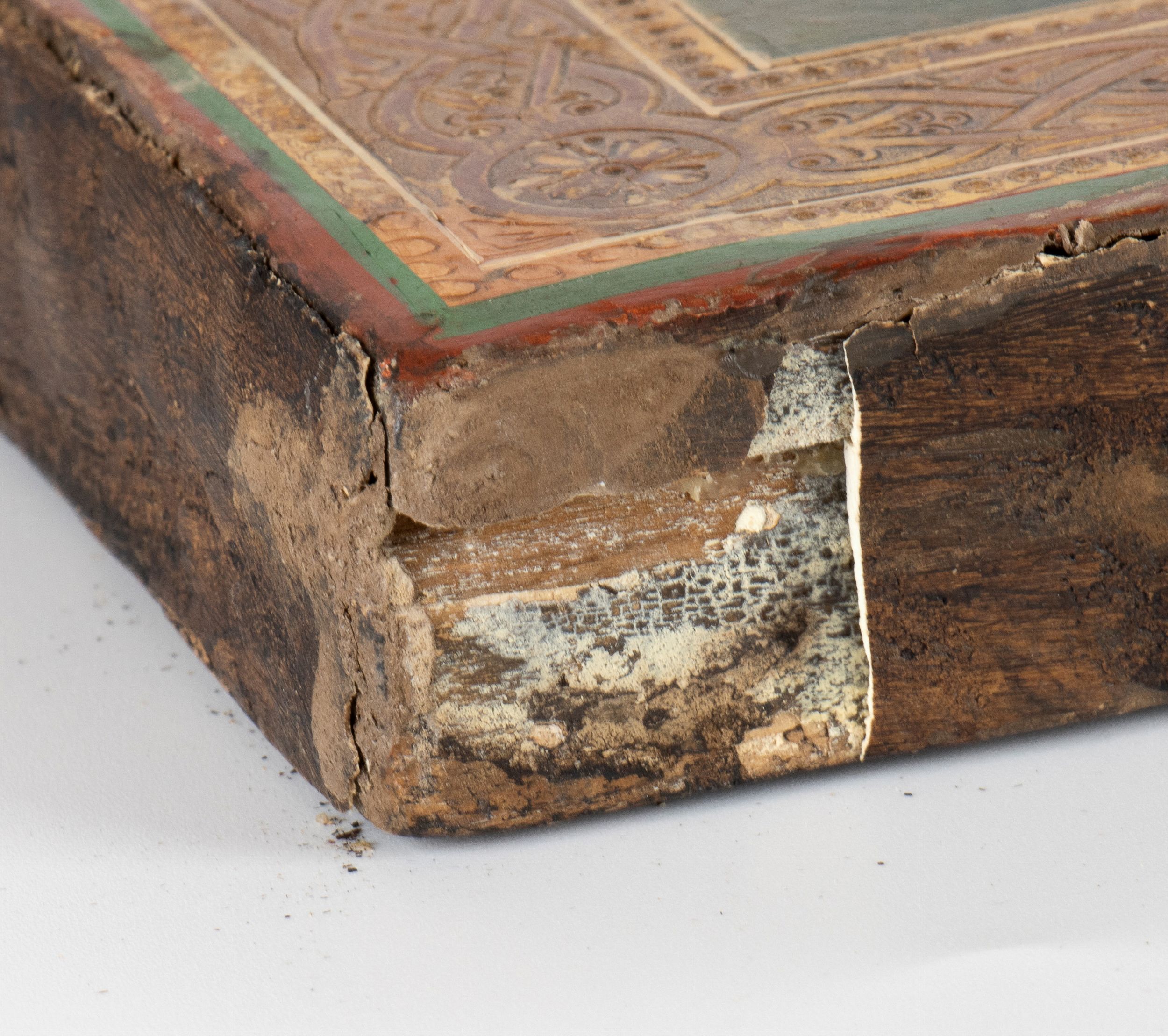 Ripaertita in nove edicole con cornice a decori intrecciati e perlinati, all'imerno delle quali sono raffigurati vari Santi, tra i quali S. Marco, S. Valentina, S. Sofia e l'Arcangelo Michele.