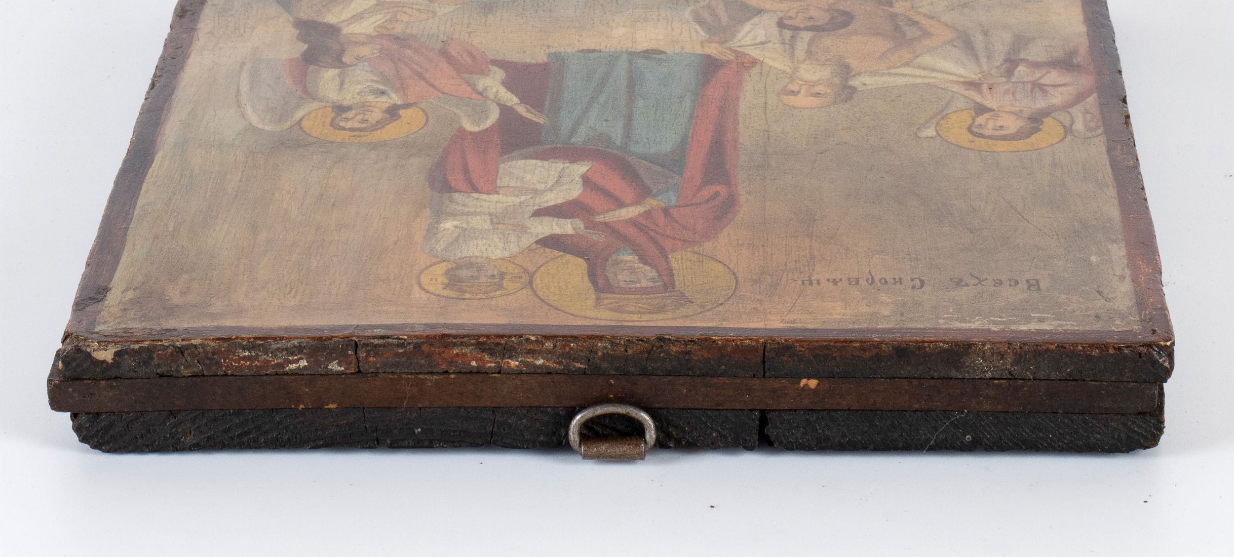 La Madre di Dio è raffigurata al centro a figura intera insieme al bambino; le figure che circondano la Vergine sono malati, affamati, minorati, sofferenti d’ogni categoria, e sono aiutati da Angeli, quali messaggeri della sua materna benevolenza.