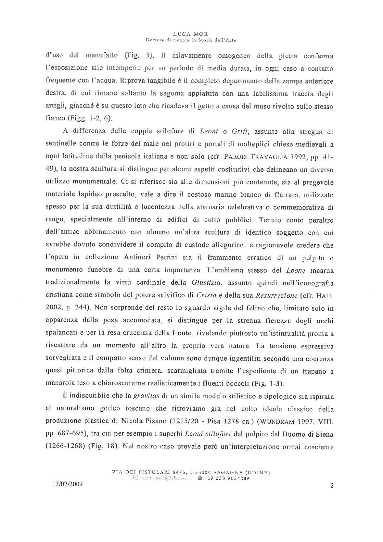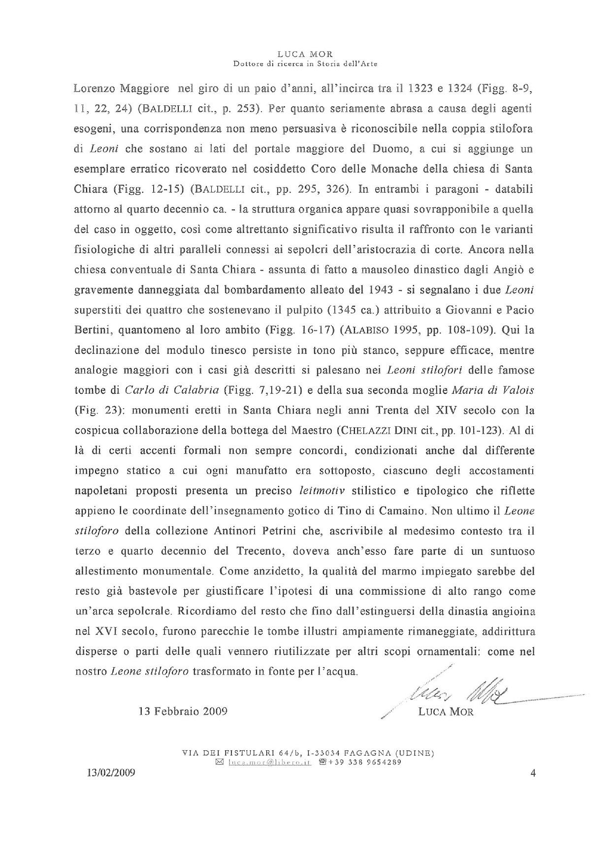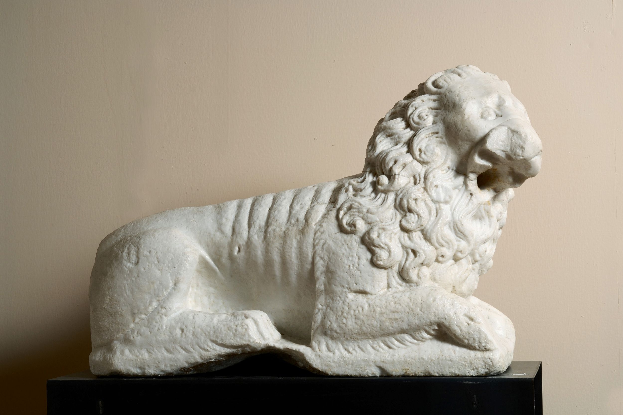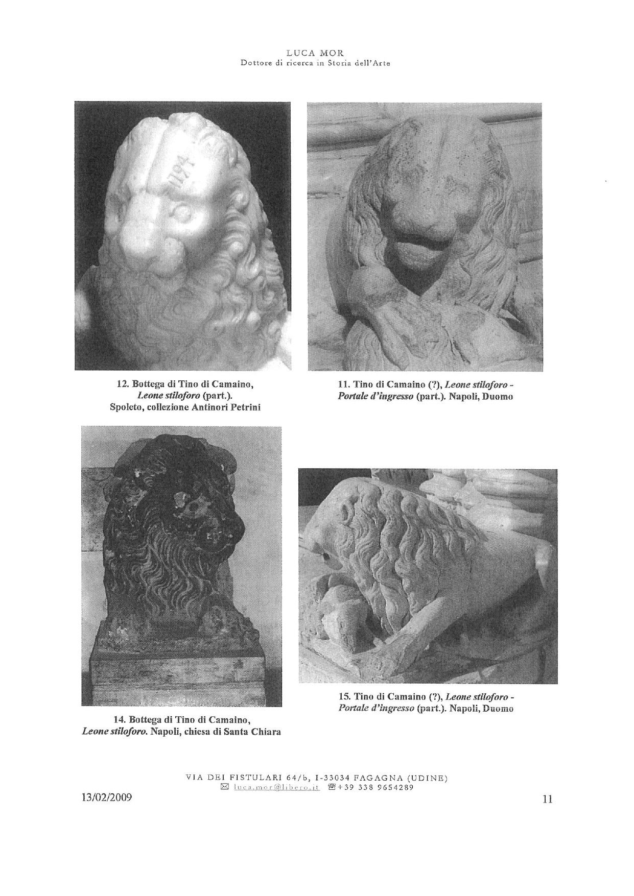 E' possibile comparare il leone con altri della Napoli angioina, quali: i leoni che ornano la tomba di Caterina d'Austria (prima moglie di Carlo di Calabria) a San Lorenzo Maggiore; i leoni ai lati del portale maggiore del Duomo; nella chiesa conventuale di Santa Chiara, dove sopravvivo due leoni di quattro che sostenevano il pulpito; i leoni presenti nelle tombe di Carlo di Calabria e della sua seconda moglie Maria di Valois eretti bella chiesa di Santa Chiara.