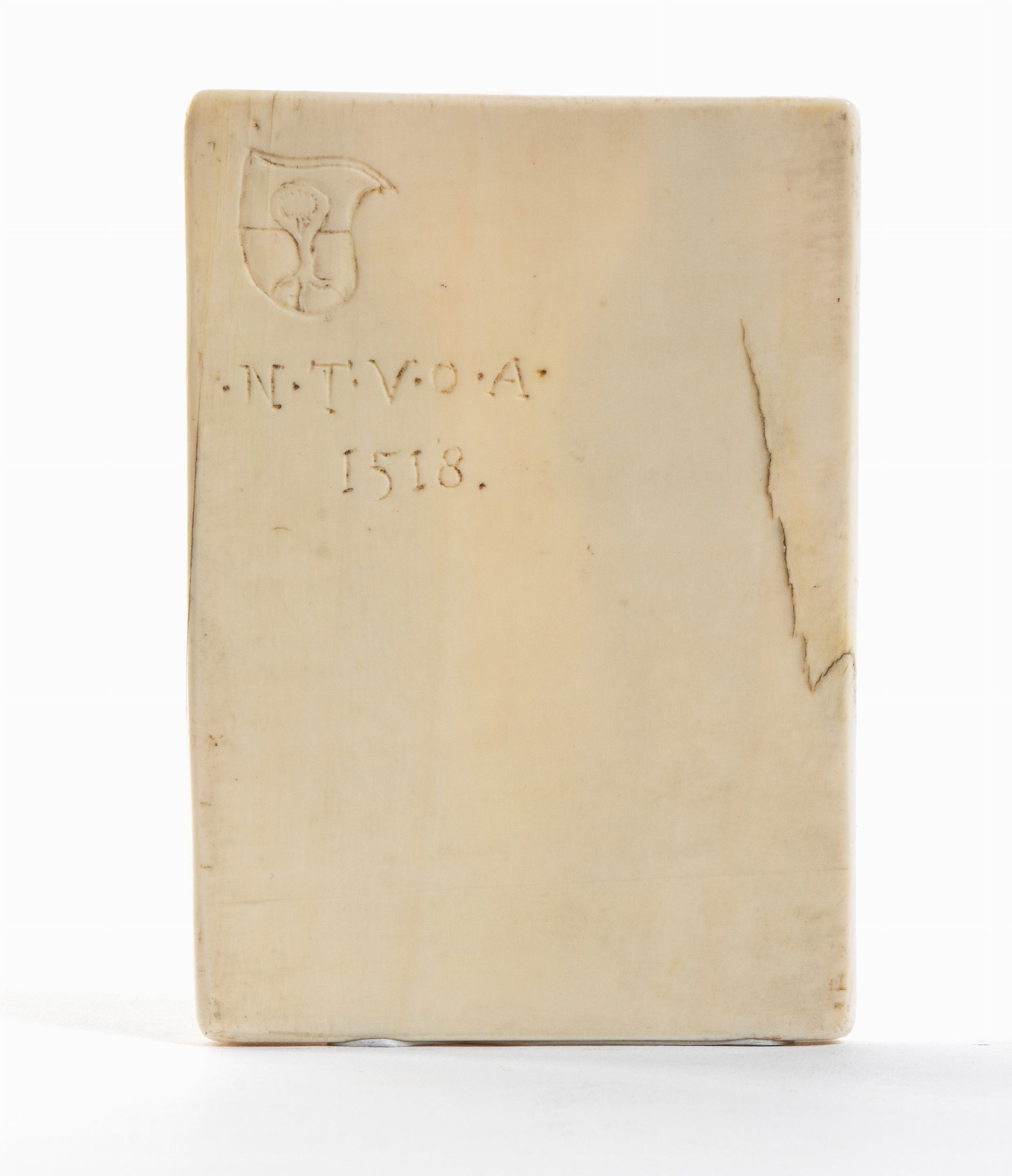 Al verso sono presenti le iscrizioni .N.T.V.O.A. - 1518 e, forse, un erma nobiliare non identificata.