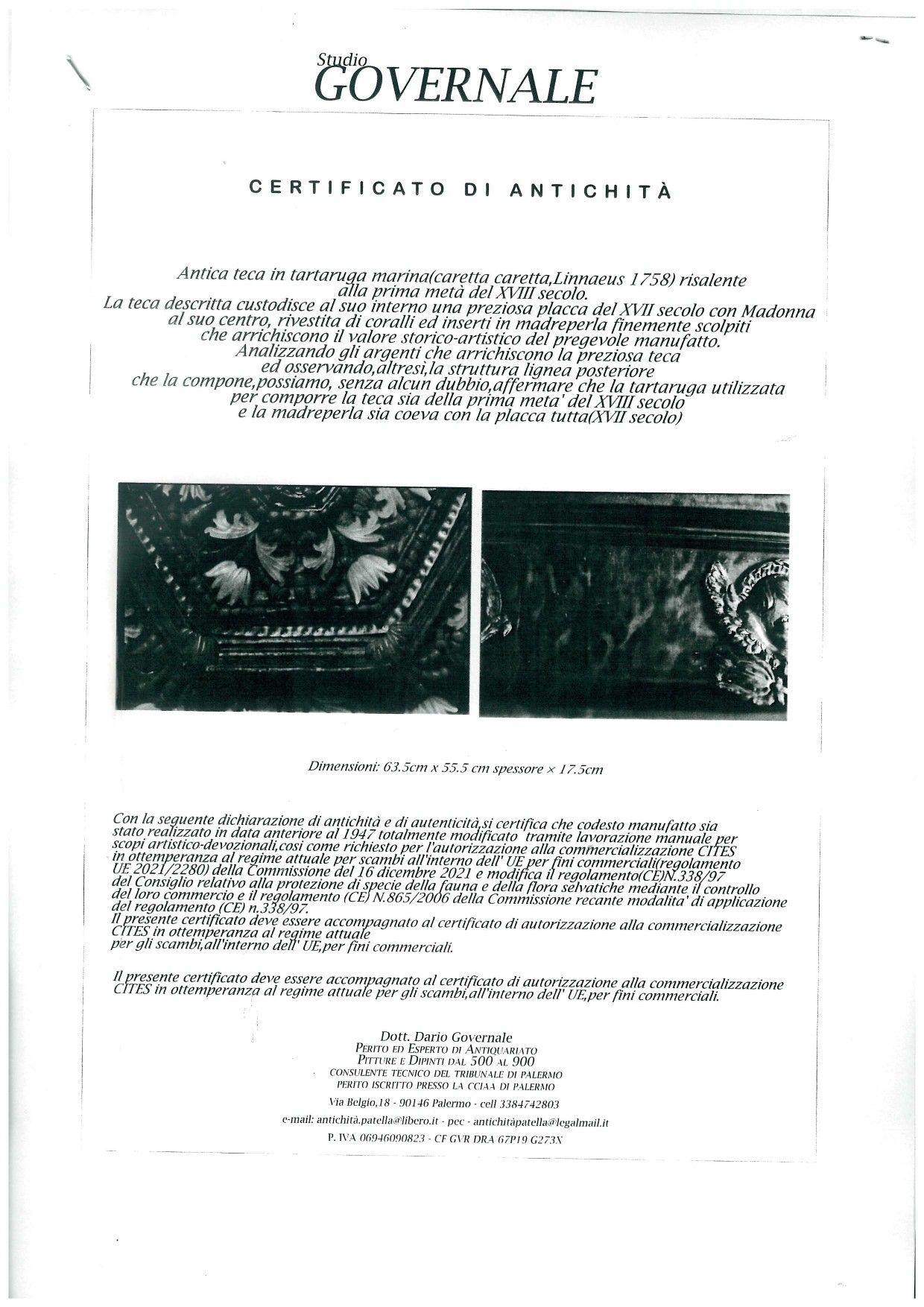 Questo interessante capezzale è tipico di quella che fu la produzione trapanese dalla fine del XVII e l'inizio del XVIII quando dalla produzione in serie di palline, olivette, piccole bugne e virgolette dei secoli XIV, XV e XVI si giunge ad opere di più elevato pregio artistico come sculture e composizioni, spesso caratterizzate da una ricca scenografia architettonica. Quando sul finire del secolo XVIII il corallo inizia a diventare più raro, gli scultori trapanesi ripiegano su altri materiali come l’avorio, l’osso e la madreperla e si cominciano ad avvertire i sintomi del declino del rosso materiale che va sempre più riducendosi, fino a quasi scomparire.