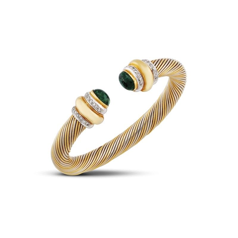 EMERALD AND DIAMOND BANGLE BRACELET IN 18KT TWO TONE GOLD