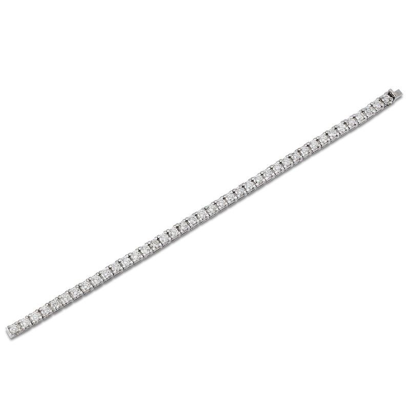 in oro bianco 18kt, impreziosito da una lunga fila di diamanti taglio brillante per ct 8 circa, punzone 750, lungh. cm 18, gr. 19