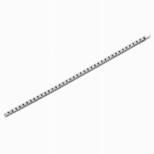 in oro bianco 18kt, impreziosito da una fila di diamanti taglio brillante per ct 8.80 circa, punzoni 18kt e del fabbricante, lungh. cm 18, gr. 16