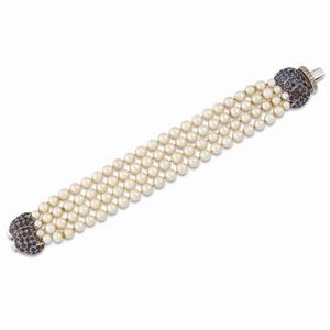 BRACCIALE DI PERLE composto da quattro fili di perle di mm 6 circa, fermatura in oro bianco 18kt impreziosita [..]