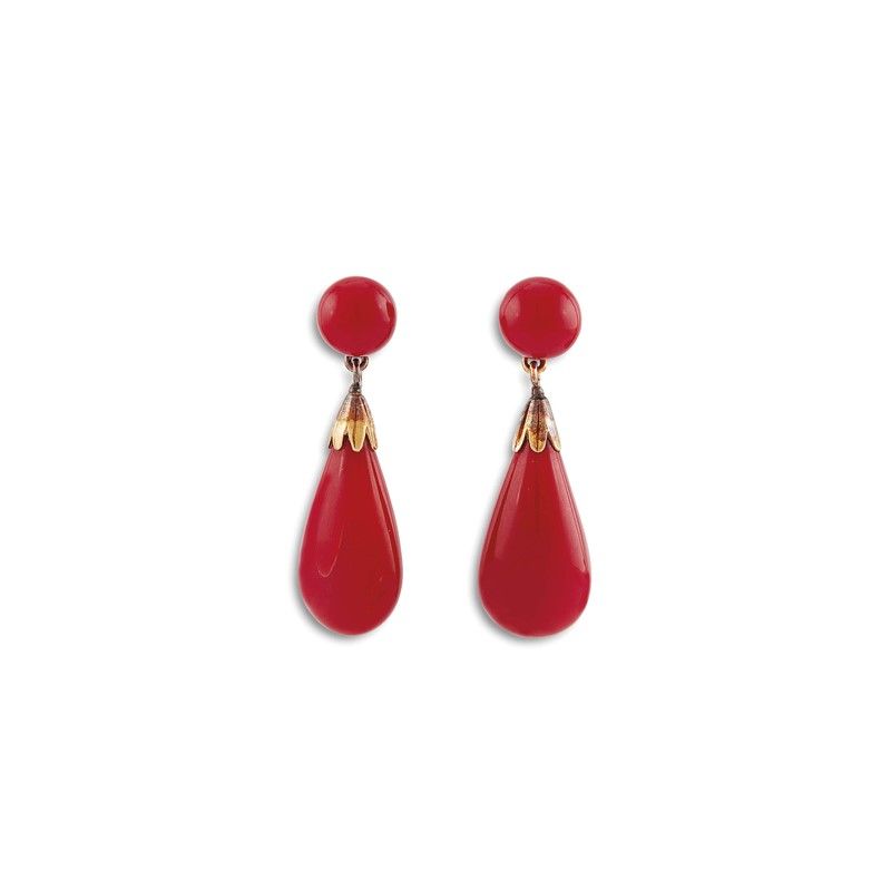 PAIO DI ORECCHINI PENDENTI CON CORALLO