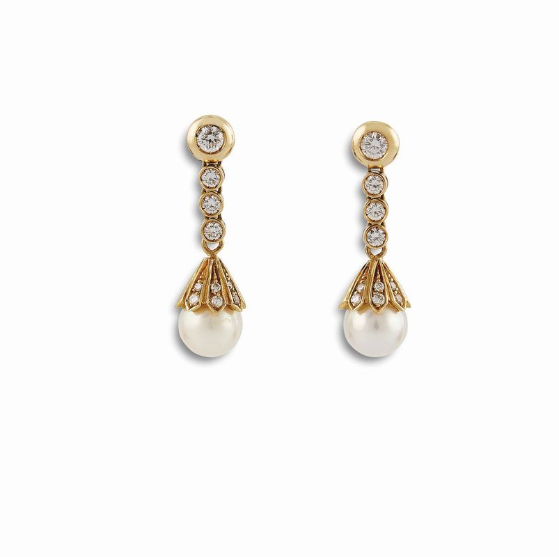 PEARL AND DIAMOND DROP EARRINGS IN 18KT YELLOW GOLD