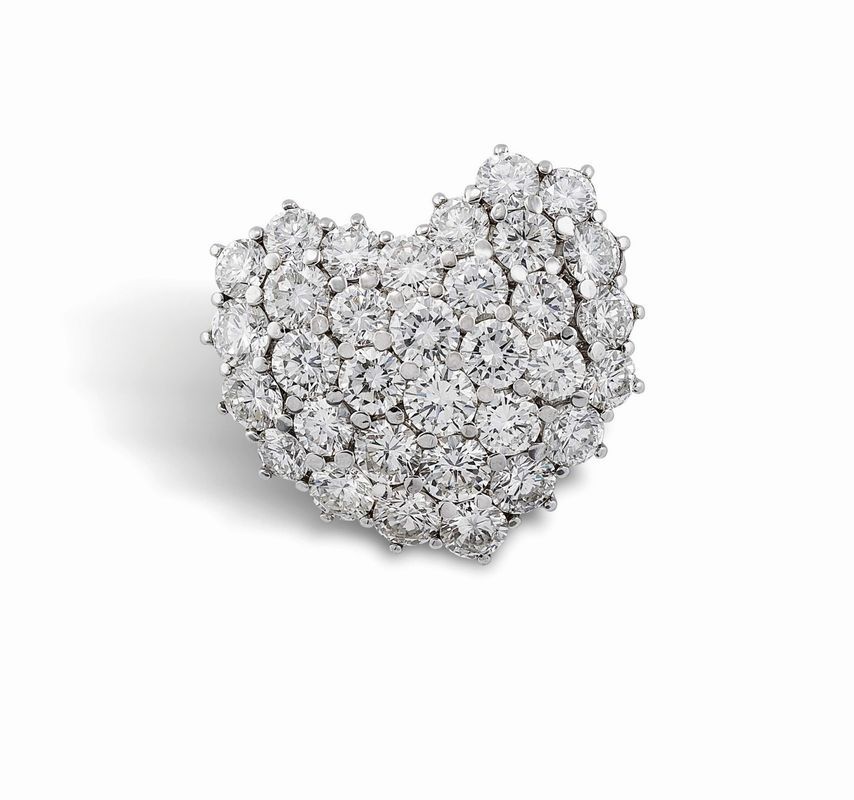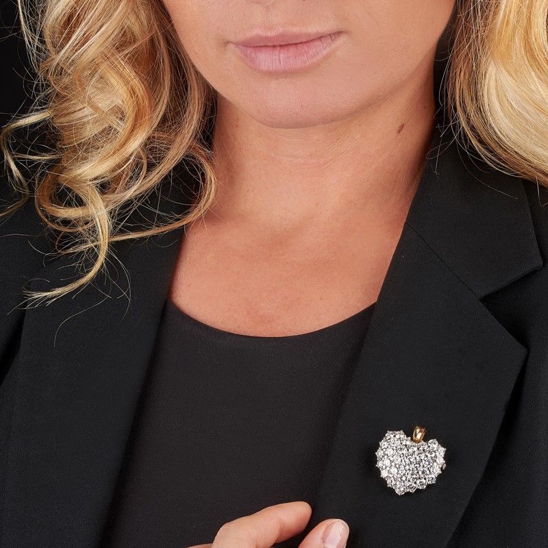 HEART-SHAPED DIAMOND BROOCH IN 18KT WHITE GOLD